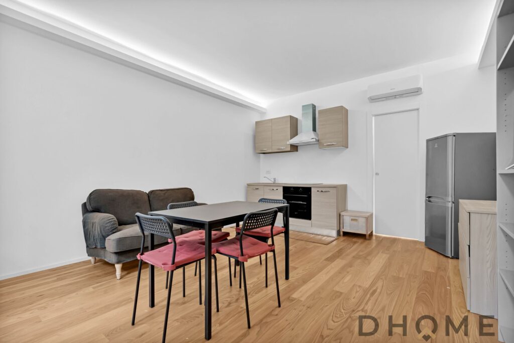 L’appartamento, frutto di una recente ristrutturazione completa, si presenta moderno, luminoso e curato nei dettagli. L’ingresso conduce a una zona giorno accogliente con cucina a vista completamente attrezzata, dotata di piano cottura, frigorifero e forno, e una zona living confortevole ideale per rilassarsi o lavorare in smart working. La camera da letto matrimoniale, arredata con gusto contemporaneo, offre ampi spazi e un’atmosfera intima e rilassante.
