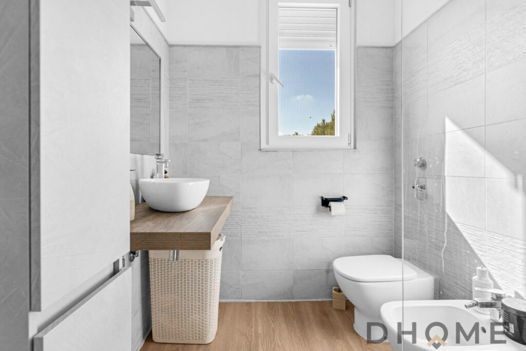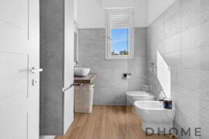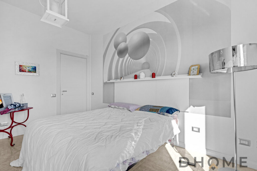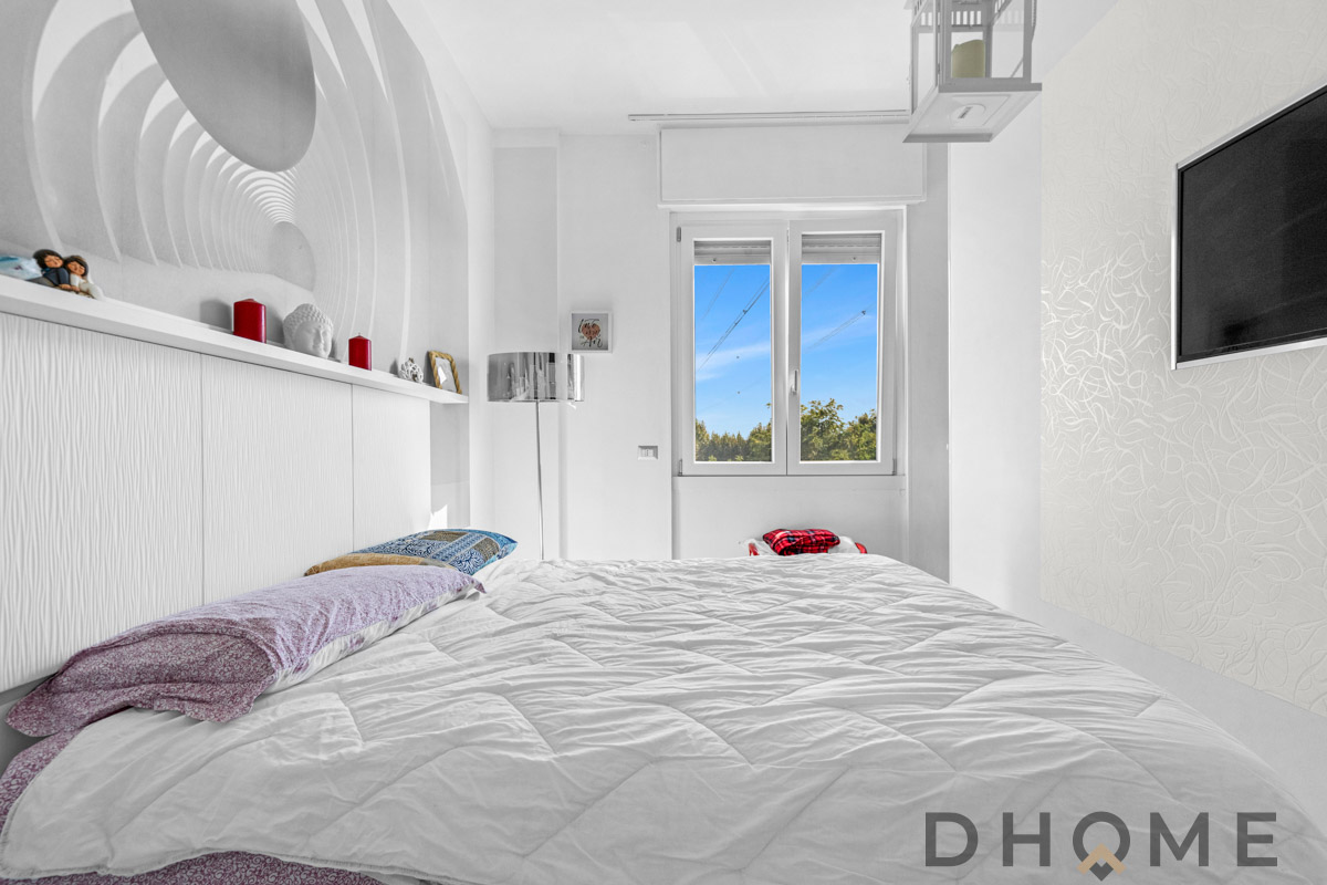 L’abitazione, caratterizzata da affaccio angolare e ottima luminosità, si distingue per i dettagli ricercati: pavimenti in ceramica in tutta la casa, infissi in doppio vetro, porta blindata e arredi bagno di design.