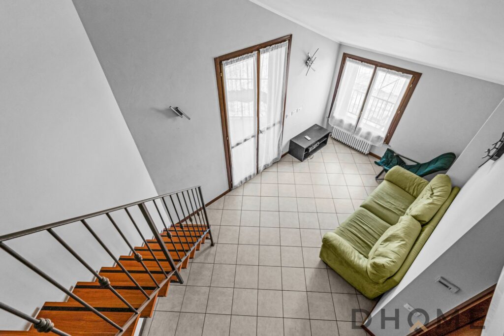 L’ingresso si apre su una luminosa zona giorno con accesso diretto al terrazzo. La disposizione angolare, valorizzata da una finestra aggiuntiva oltre alla porta finestra, garantisce ottima luminosità agli ambienti.