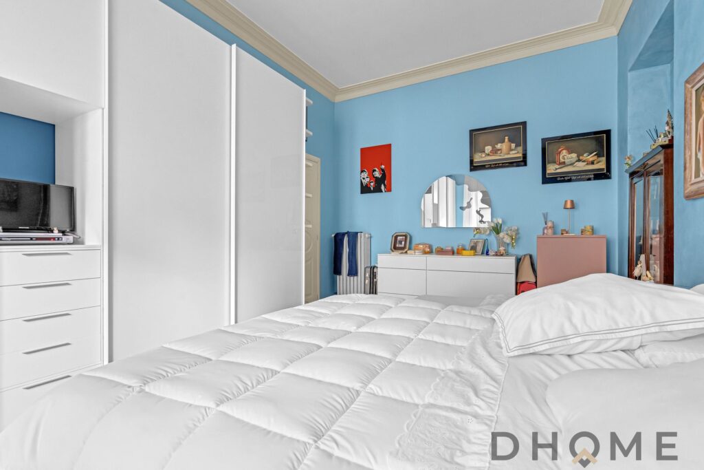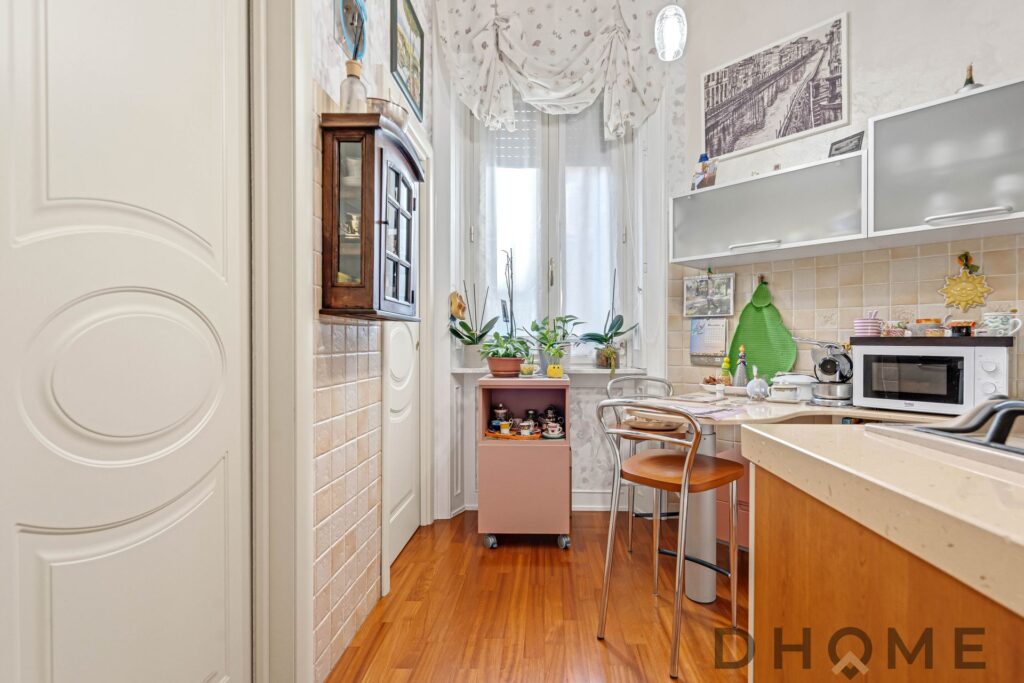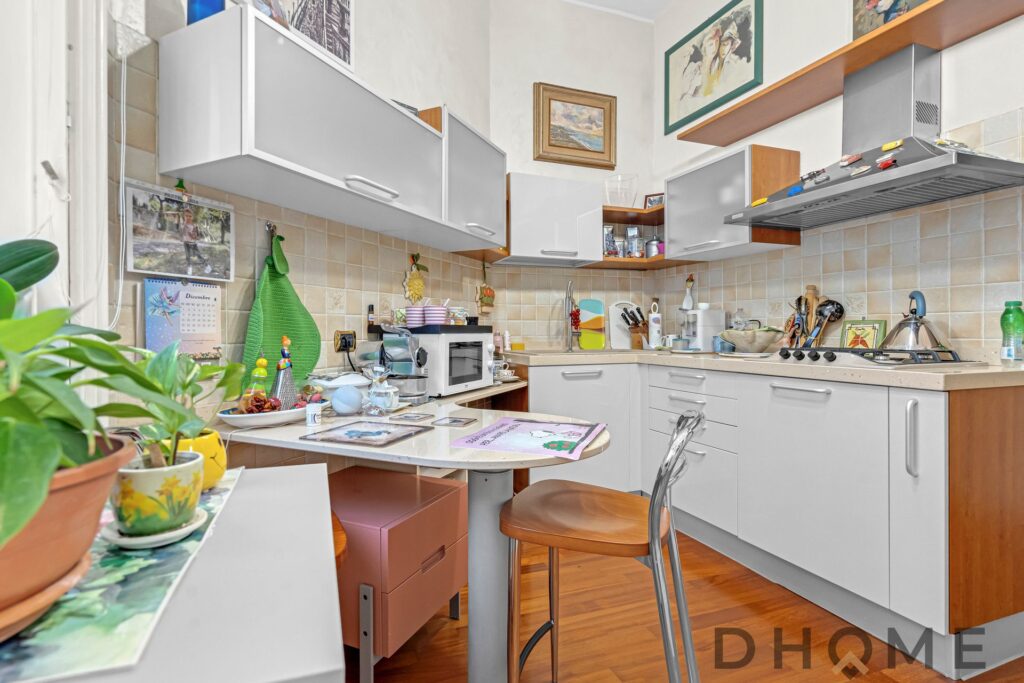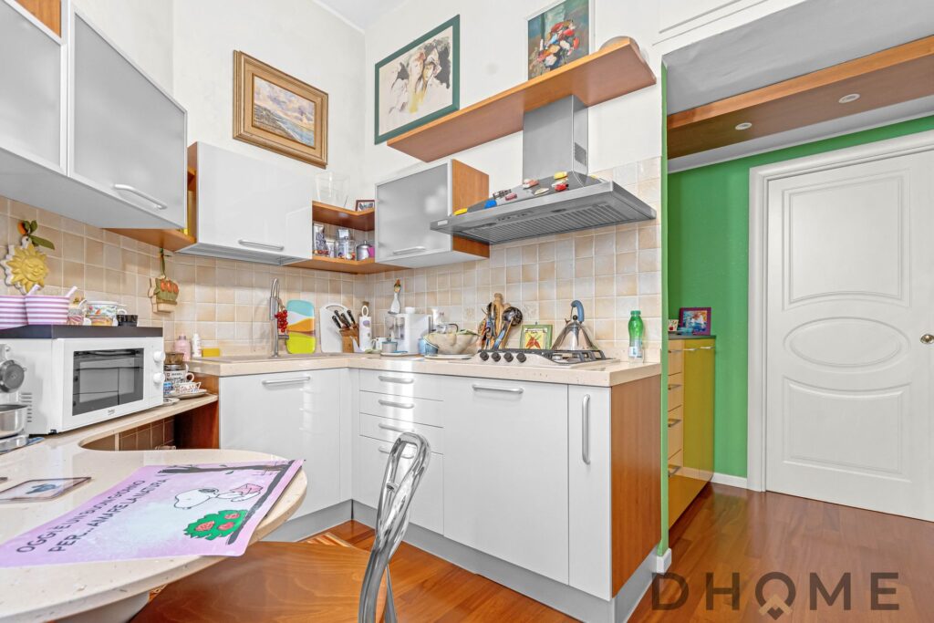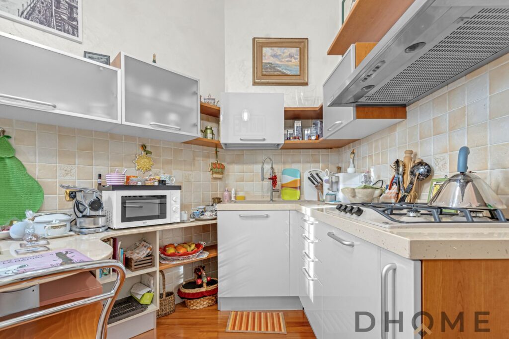 L’appartamento si apre su un soggiorno luminoso con balcone e prosegue con una cucina separata abitabile, completa di zona lavanderia e di un piccolo balcone. La grande camera matrimoniale e il bagno finestrato completano la soluzione, offrendo spazi ben distribuiti e confortevoli.