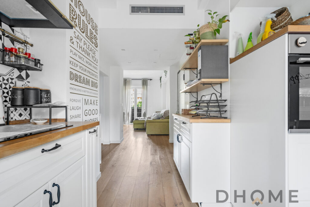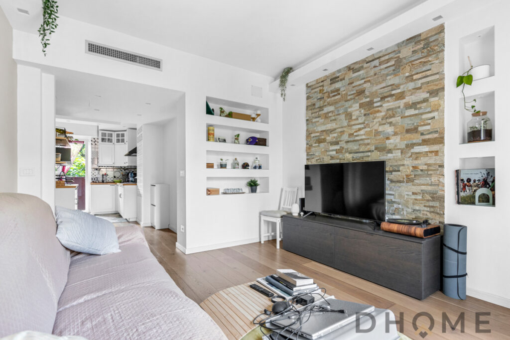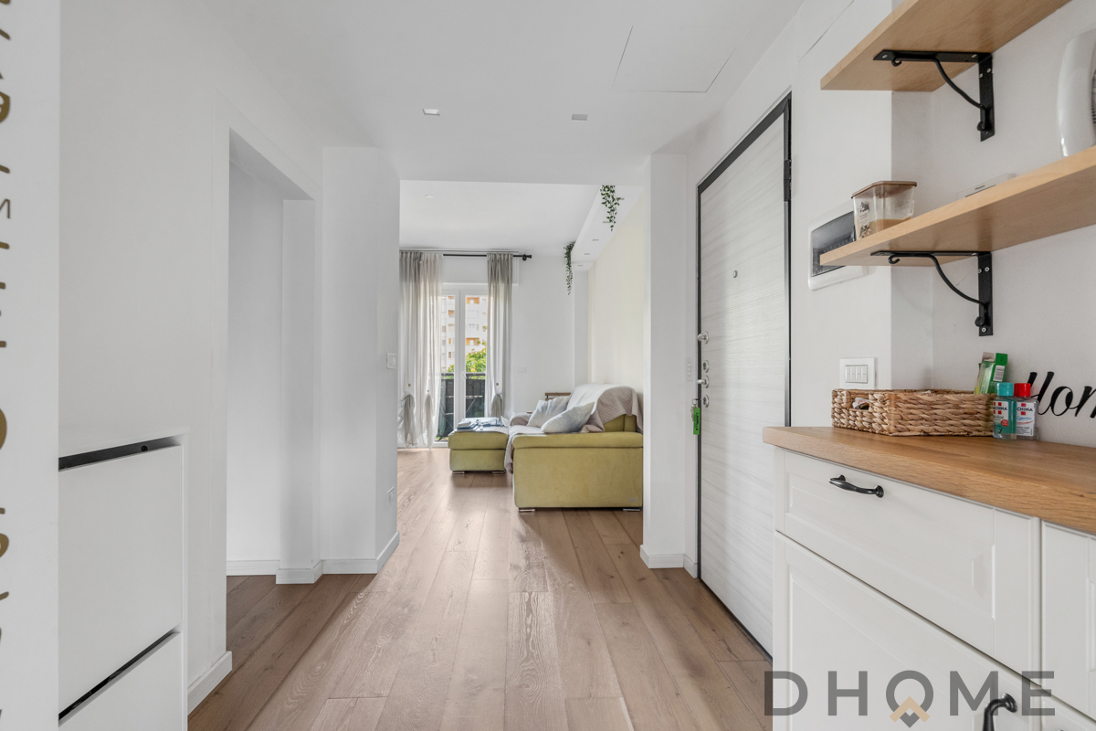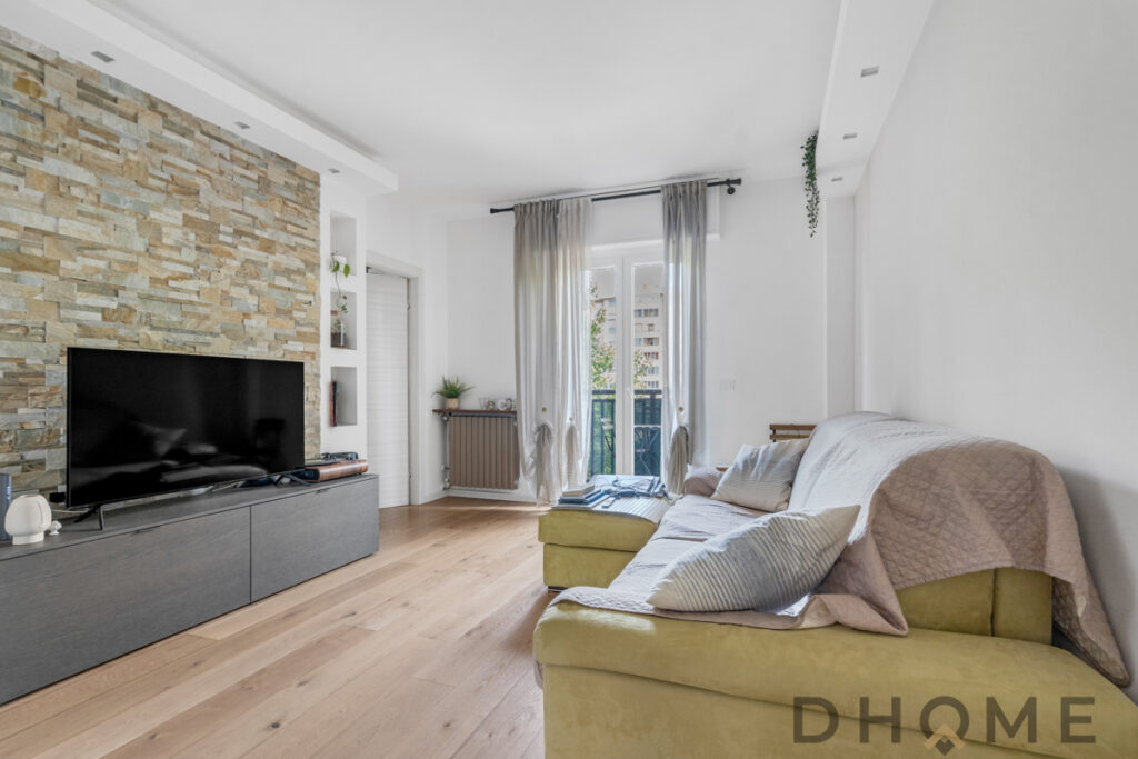 L’appartamento, completamente ristrutturato nel 2018 con finiture moderne e materiali di qualità, presenta una distribuzione funzionale degli spazi: l’ingresso si apre direttamente sull’ampio soggiorno, caratterizzato da una doppia esposizione che garantisce un’eccellente luminosità durante tutto l’arco della giornata. La cucina è abitabile, separata e ben organizzata.