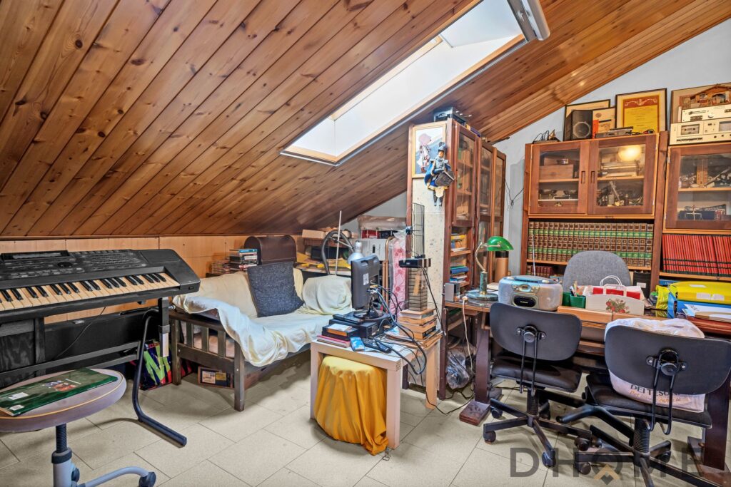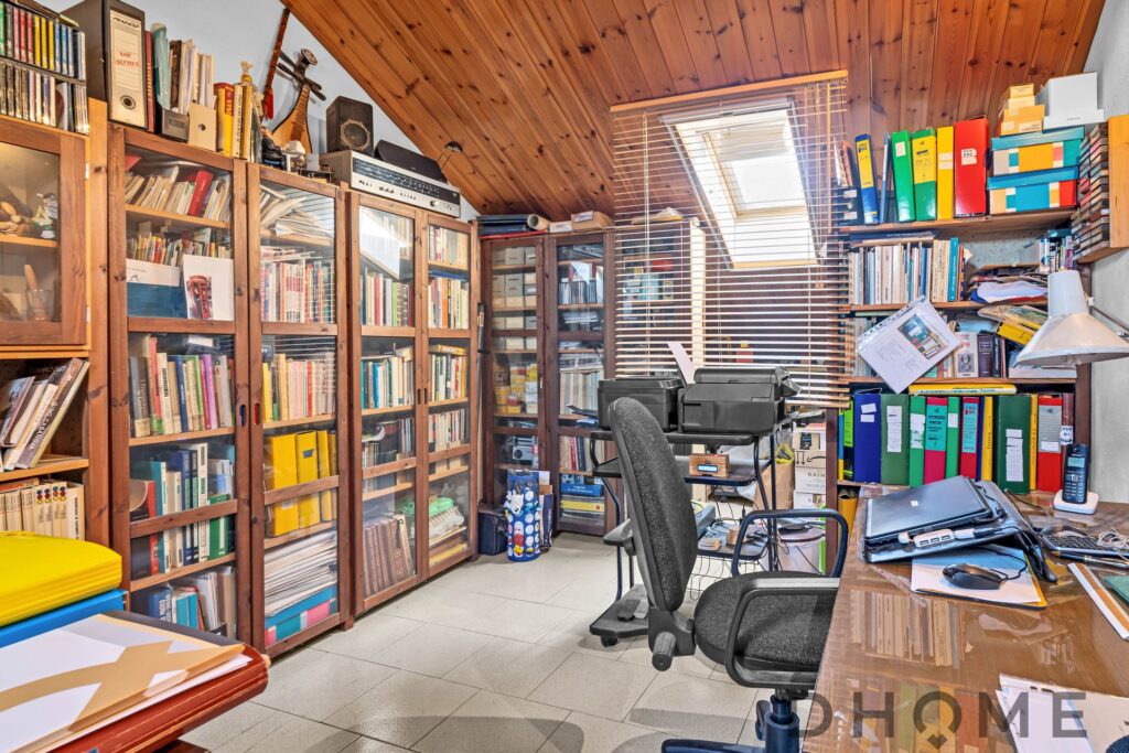 Dal medesimo piano, una seconda scala conduce a una grande mansarda che può essere utilizzata come zona relax, studio o spazio hobby, grazie alle sue dimensioni generose e alla luminosità naturale.