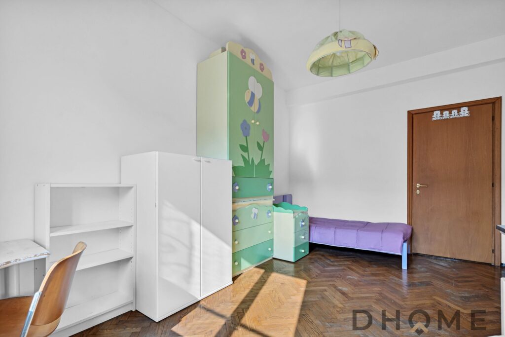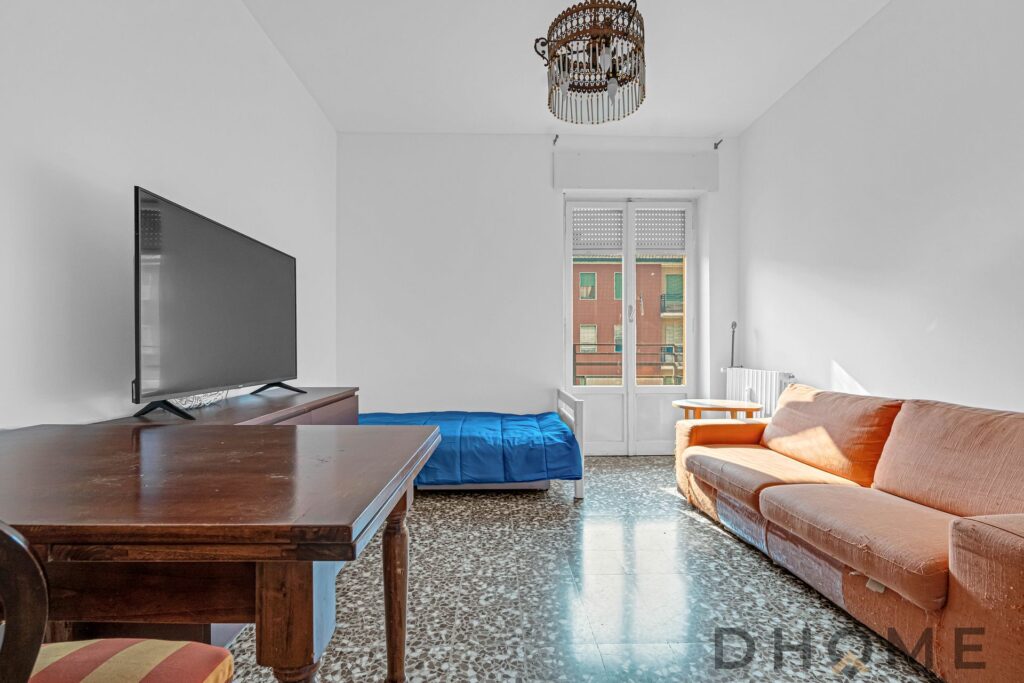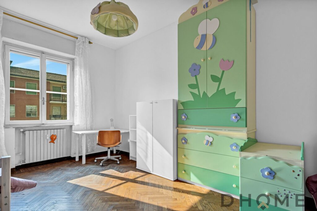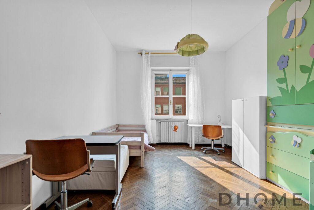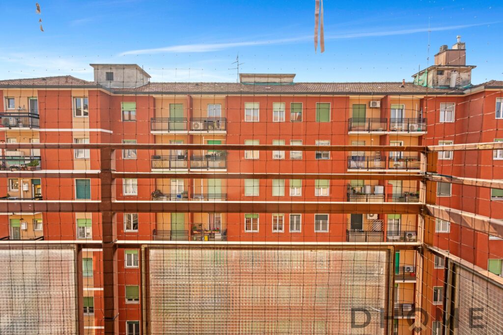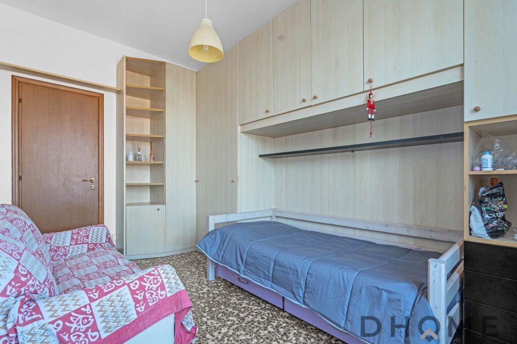 Appartamento di 90mq, sito al 7° piano (di 8) di uno stabile dotato di portineria cosi composto: ingresso in disimpegno; 2 camere da letto di 19 mq con due letti singoli suscettibili di occupazione singola o doppia; camera ad uso singolo di 12 mq; cucina semi abitabile e bagno finestrato con doppio lavello, due balconi; in fase d’installazione nuovi infissi.