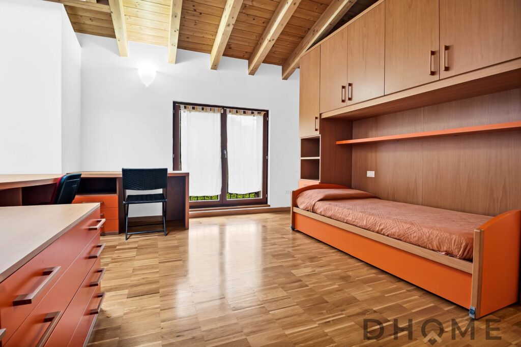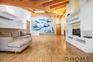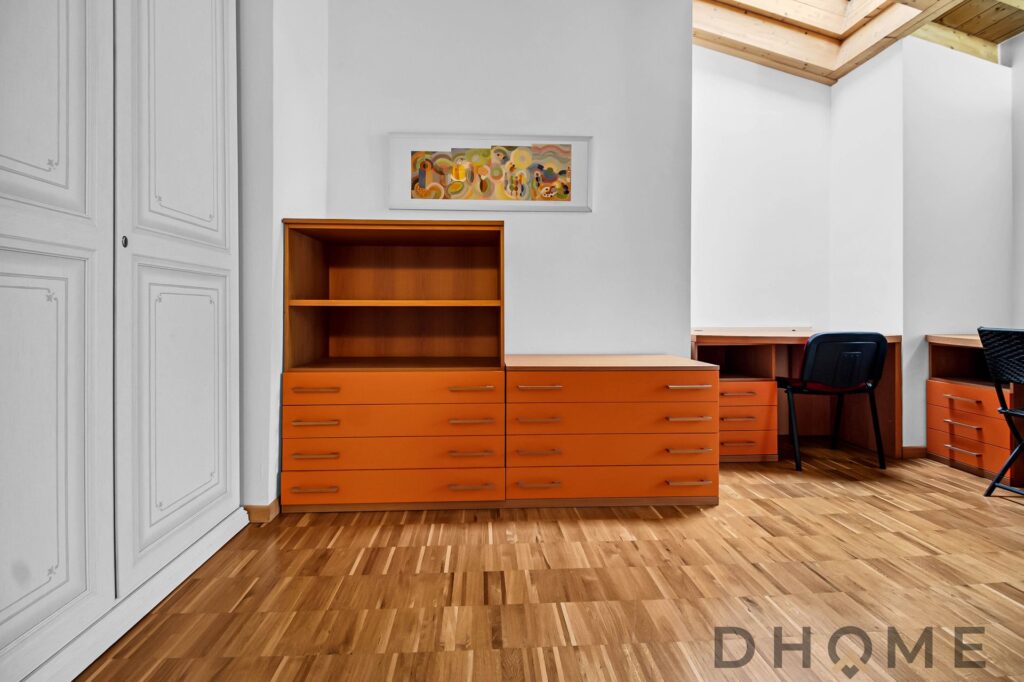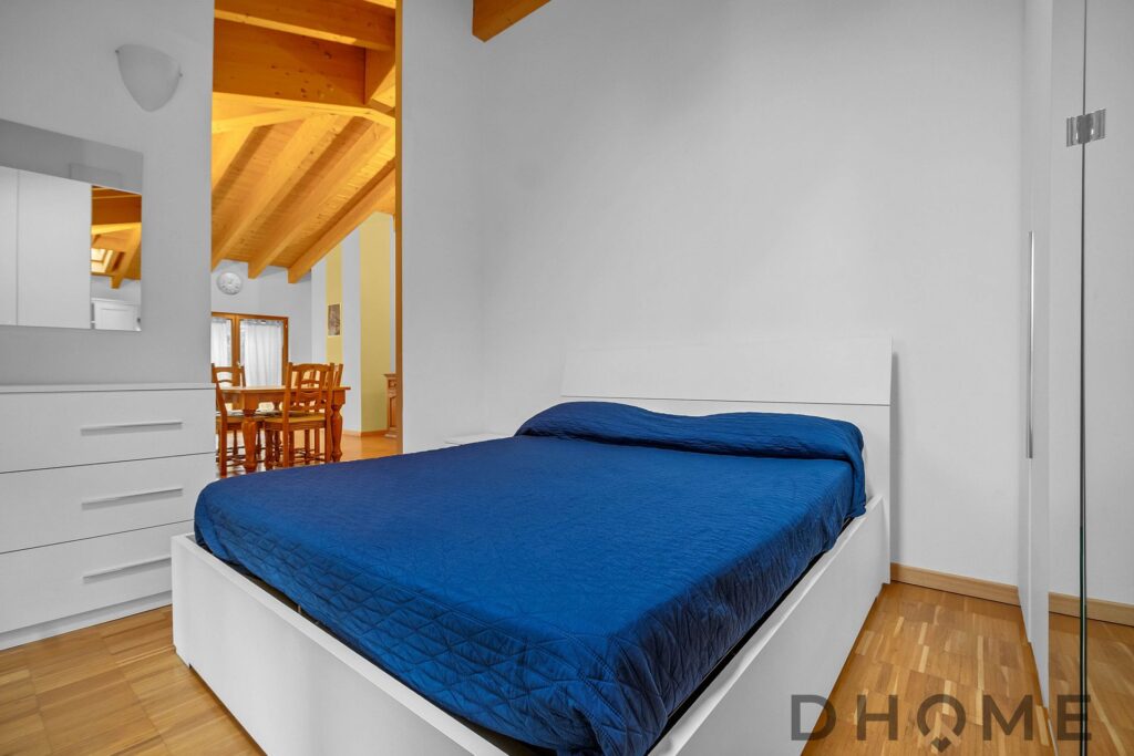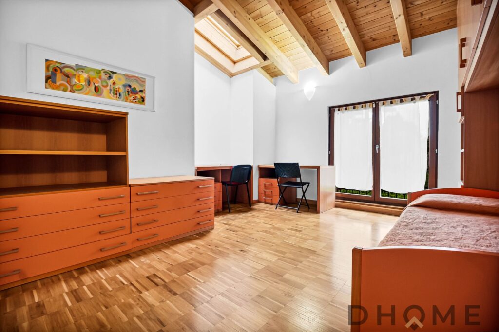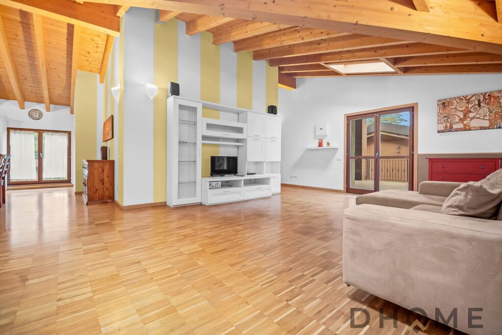 L’appartamento, un trilocale di ampia metratura (143 mq) facilmente adattabile a quadrilocale, si distingue per spazi generosi, luminosità e un’atmosfera di autentico benessere. Il tetto con travi in legno a vista regala calore, carattere e un’eleganza senza tempo, creando ambienti accoglienti e raffinati.