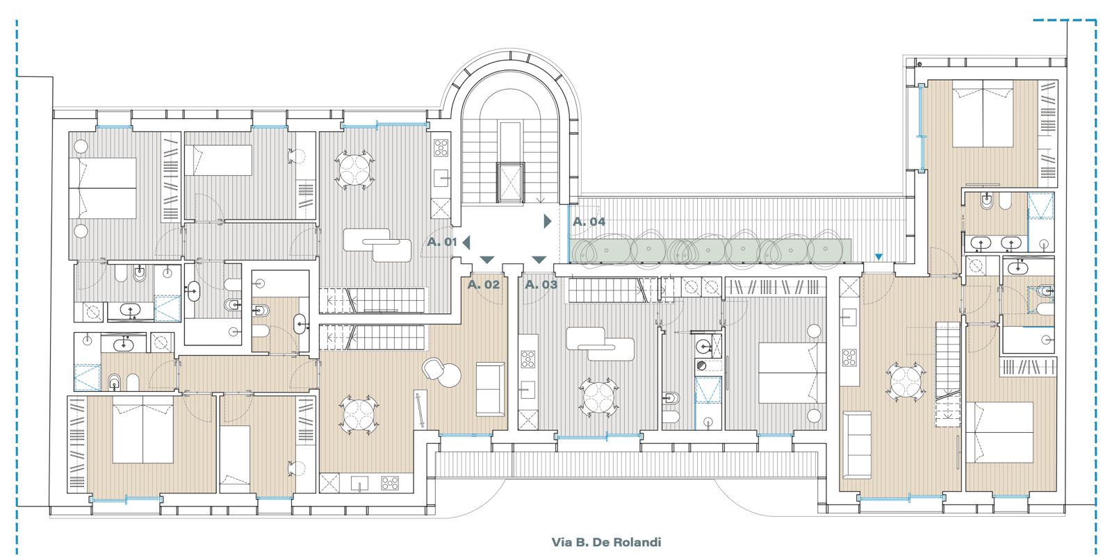 Ogni unità è un ampio 3 locali con doppi servizi, progettato con un layout razionale e moderno: