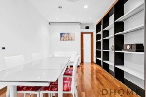 L’ingresso conduce a un grande soggiorno luminoso, ideale come zona living e studio condiviso.