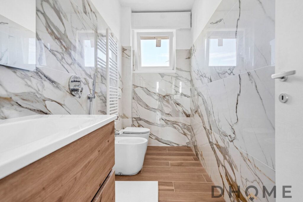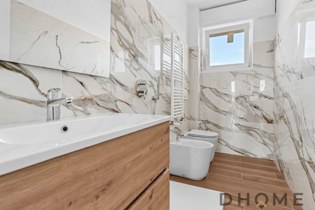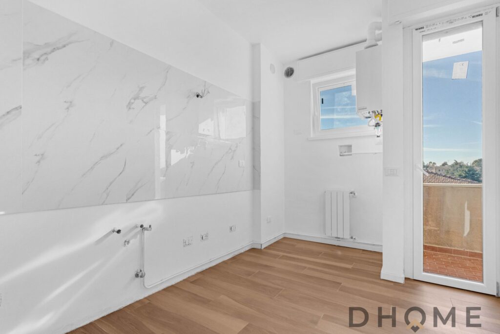 L’ingresso si apre su un disimpegno a “L” che distribuisce in modo armonioso tutti gli ambienti. Subito a sinistra la cucina abitabile, ampia e finestrata, con accesso diretto al balcone; il balcone dialoga con l’ampio soggiorno, anch’esso finestrato, creando una zona giorno luminosa e ariosa, ideale per la quotidianità e i momenti di condivisione. Proseguendo si raggiungono la camera matrimoniale e il bagno, entrambi finestrati. Tutti gli ambienti principali sono esposti su tre affacci (O–N–E) che garantiscono luce naturale per l’intera giornata.