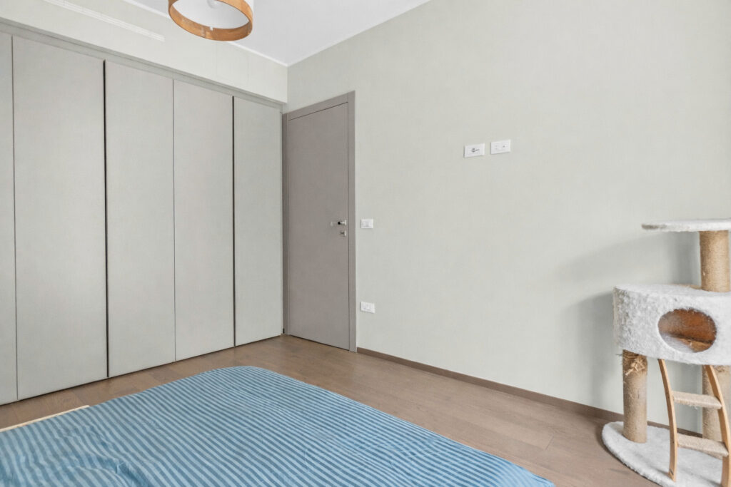 L’appartamento si distingue per la doppia esposizione Est/Ovest, che garantisce ottima luminosità durante l’intera giornata e una ventilazione naturale piacevole. Gli ambienti sono ben distribuiti e valorizzati da finiture di qualità, tra cui pavimentazione in parquet, cucina su misura e armadio su misura nella camera da letto, soluzioni perfette per chi desidera funzionalità e ordine.