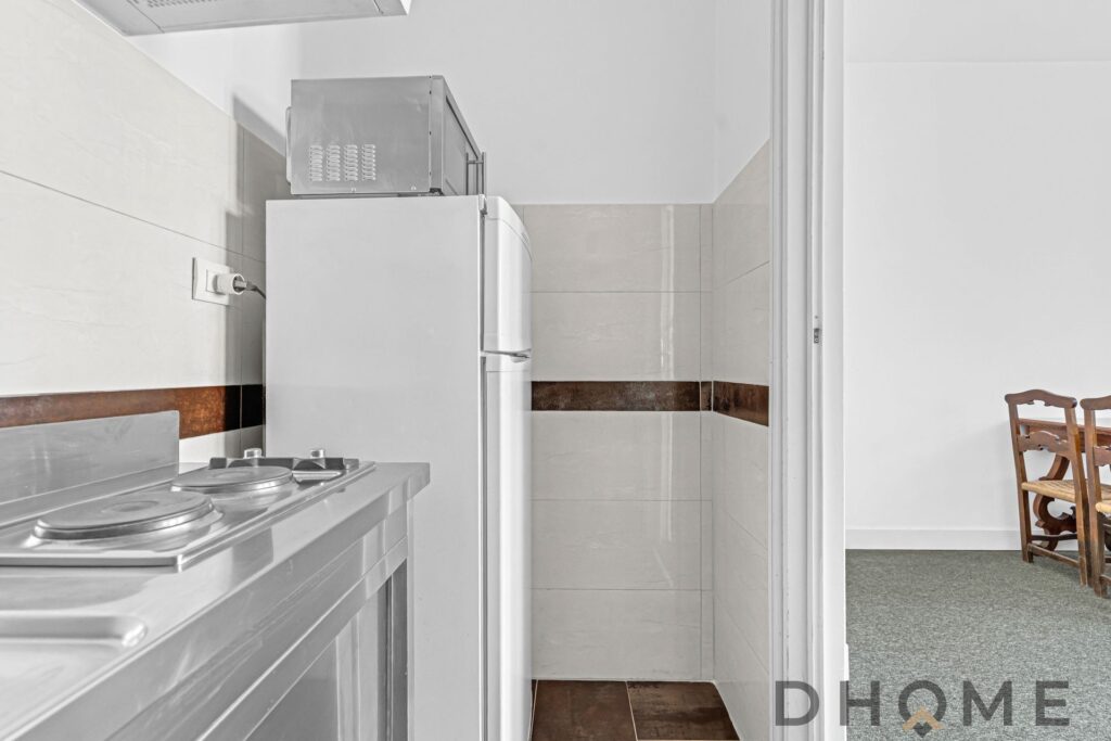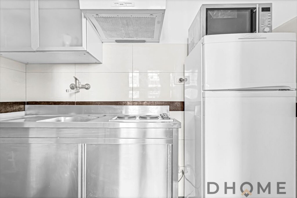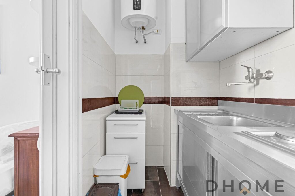 Il cucinotto separato consente una gestione più ordinata degli ambienti, mantenendo una chiara distinzione tra area operativa e spazio abitativo.
