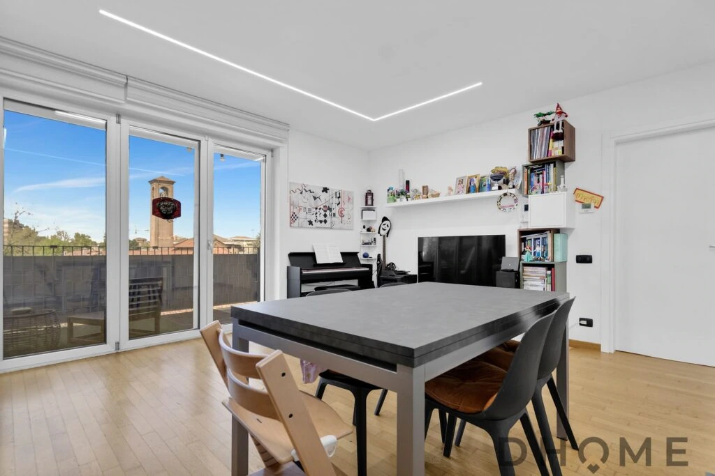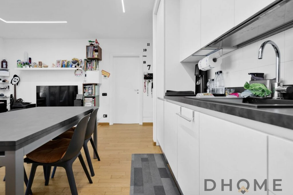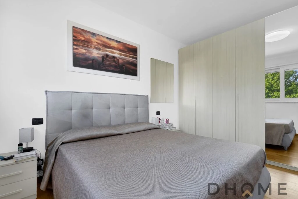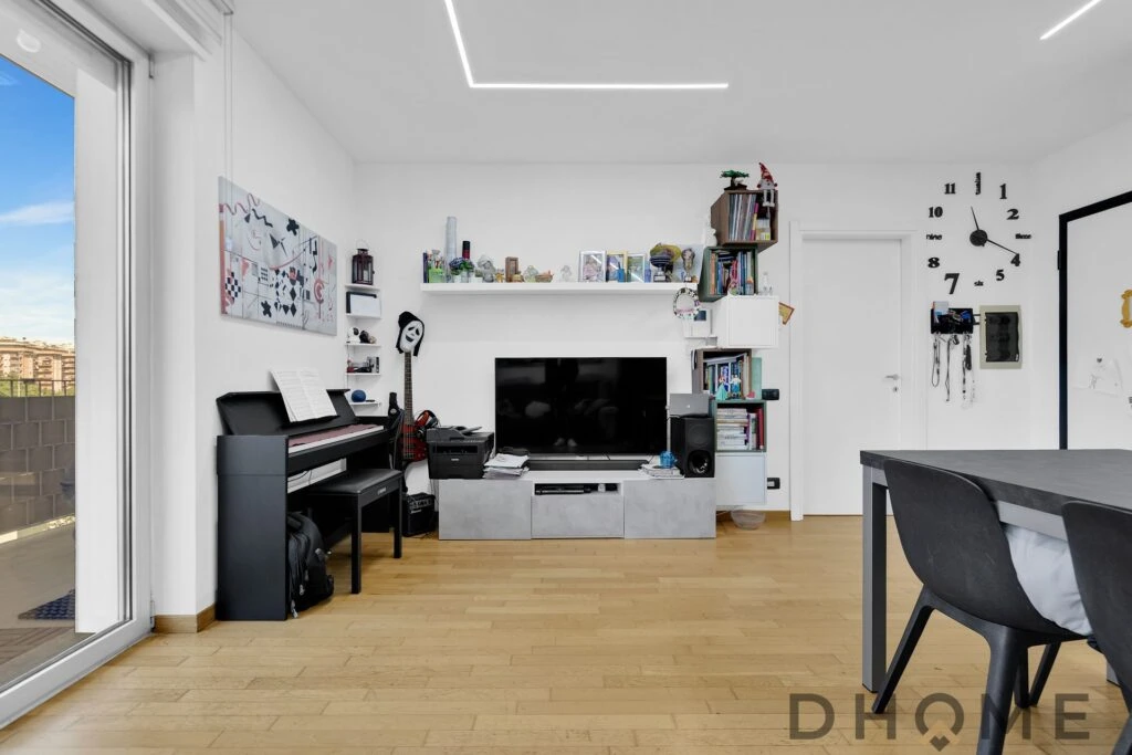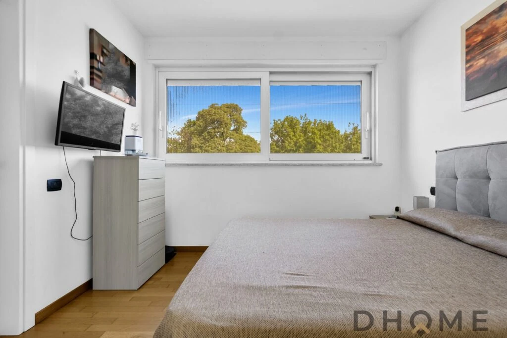 L’appartamento è così distribuito: ingresso in un moderno e spazioso open space, dove troviamo l’ampia cucina soggiorno, impreziosita da ampie vetrate che conducono allo splendido terrazzo vivibile. Lo spazio esterno, di generose dimensioni, è già dotato di un pratico Barbecue, perfetto per cene all’aperto, con affaccio diretto su una rigogliosa zona verde riparata dal traffico. Proseguendo lungo il corridoio, incontriamo la prima camera che vanta il privilegio dell’accesso diretto allo splendido terrazzo, seguita da un raffinato bagno finestrato. Il disimpegno ci conduce poi al secondo servizio sempre finestrato e alla prestigiosa camera padronale, resa straordinaria da immense vetrate che inondano l’ambiente di luce naturale esaltandone la spaziosità e il comfort.