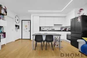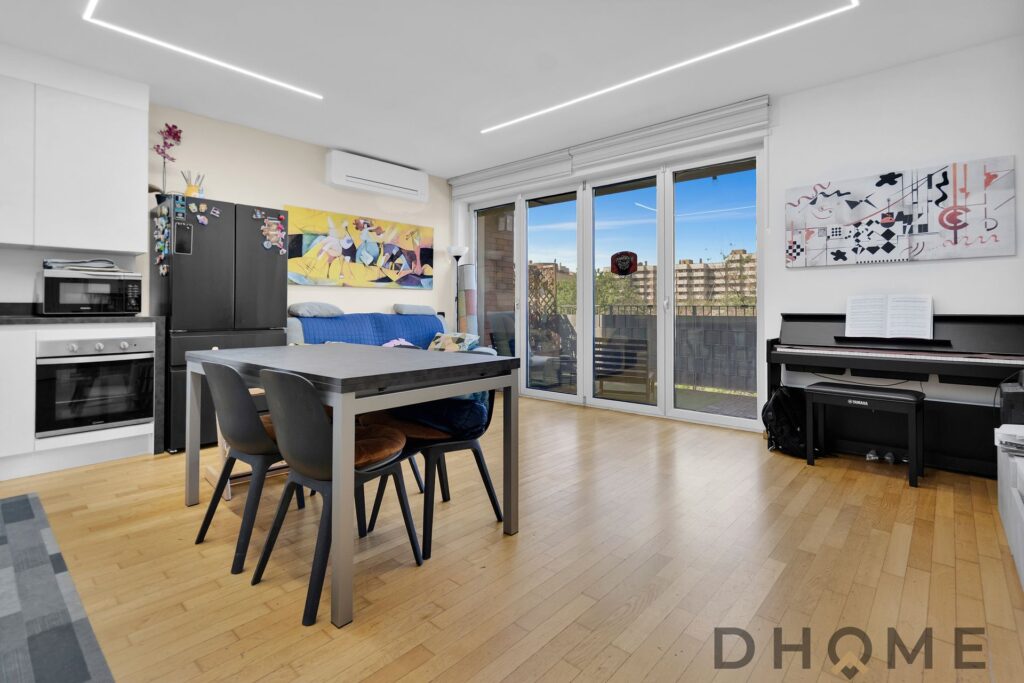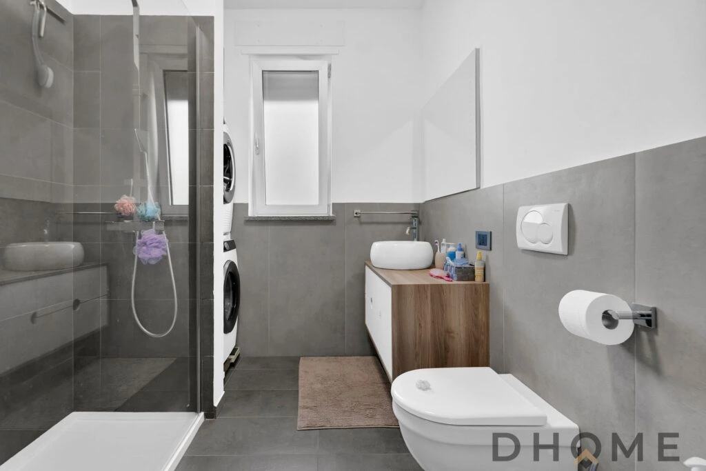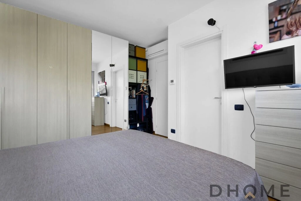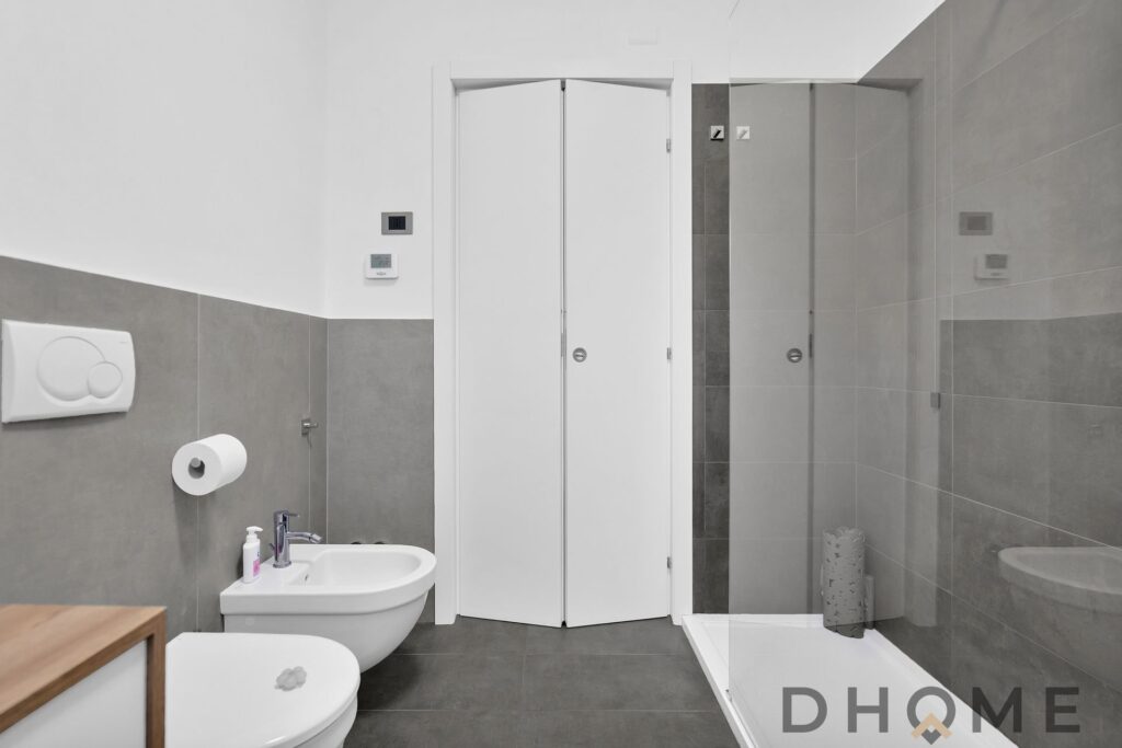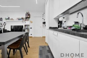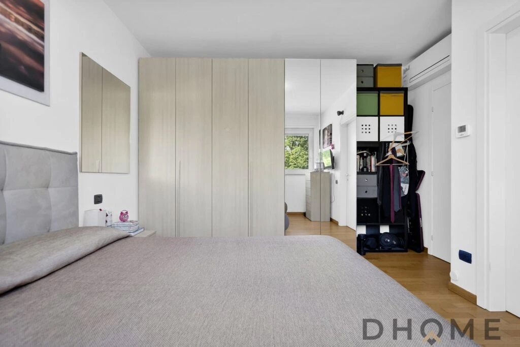 L’appartamento è così distribuito: ingresso in un moderno e spazioso open space, dove troviamo l’ampia cucina soggiorno, impreziosita da ampie vetrate che conducono allo splendido terrazzo vivibile. Lo spazio esterno, di generose dimensioni, è già dotato di un pratico Barbecue, perfetto per cene all’aperto, con affaccio diretto su una rigogliosa zona verde riparata dal traffico. Proseguendo lungo il corridoio, incontriamo la prima camera che vanta il privilegio dell’accesso diretto allo splendido terrazzo, seguita da un raffinato bagno finestrato. Il disimpegno ci conduce poi al secondo servizio sempre finestrato e alla prestigiosa camera padronale, resa straordinaria da immense vetrate che inondano l’ambiente di luce naturale esaltandone la spaziosità e il comfort.