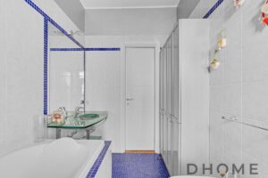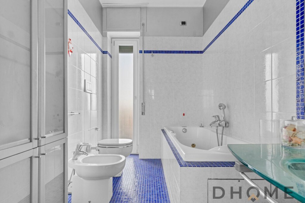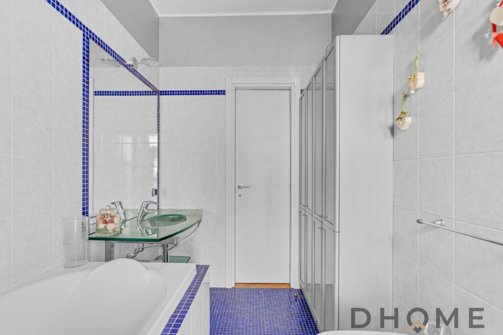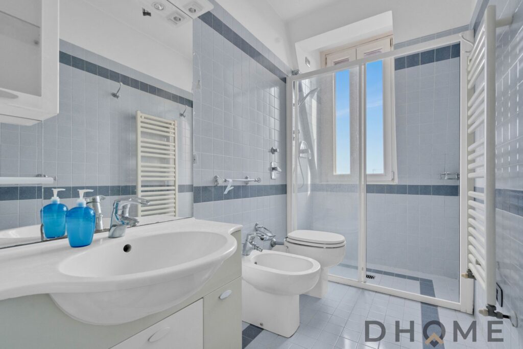 La soluzione è servita da doppi servizi igienici, entrambi finestrati e finemente rifiniti.