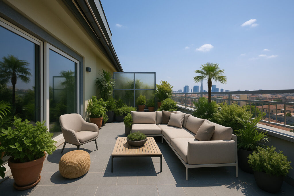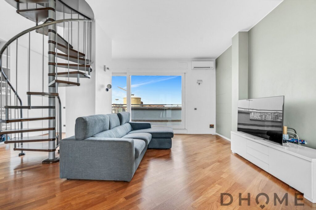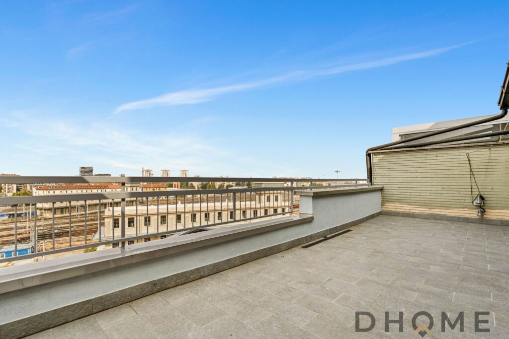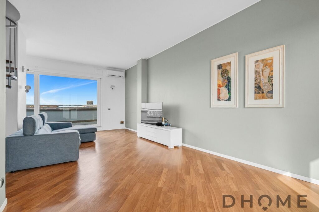 PIANO OTTAVO – LA ZONA GIORNO E IL TERRAZZO: L’ingresso principale introduce a una zona living ampia e straordinariamente luminosa. Questo ambiente è caratterizzato da un’elegante pavimentazione in parquet di dossier d’Africa a listoni e da una generosa portafinestra a scorrimento. Quest’ultima funge da accesso al fiore all’occhiello della proprietà: uno splendido terrazzo al piano di 50 mq, spazio ideale per cene all’aperto e momenti di relax, che offre una vista aperta sullo skyline urbano. Completa il piano un’ampia cucina abitabile, anch’essa luminosa, dotata di portafinestra con parapetto “alla francese”.