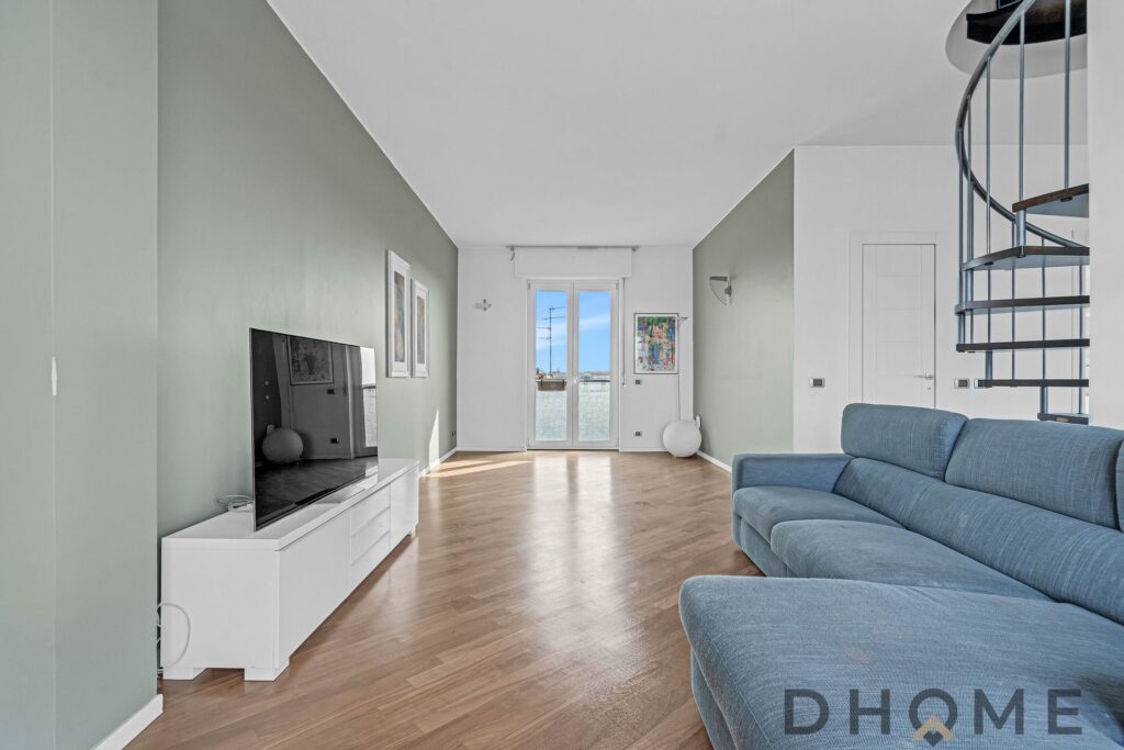 L’ATTICO: COMPOSIZIONE E SPAZI L’immobile, un ampio trilocale con potenziale di trasformazione in quadrilocale, si sviluppa su due livelli, garantendo un’ottima separazione tra la zona giorno e la zona notte.