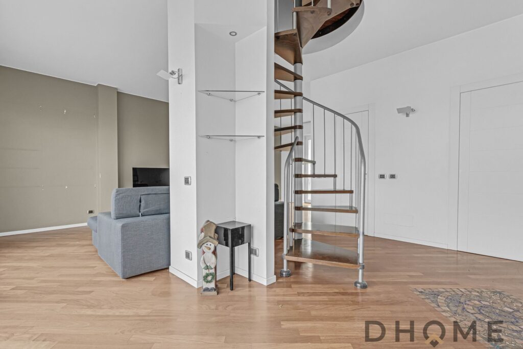 PIANO NONO – LA ZONA NOTTE: Una comoda scala interna conduce al livello superiore, interamente dedicato alla zona notte. Qui si trovano due spaziose camere da letto, di cui la master bedroom vanta una privilegiata doppia esposizione.