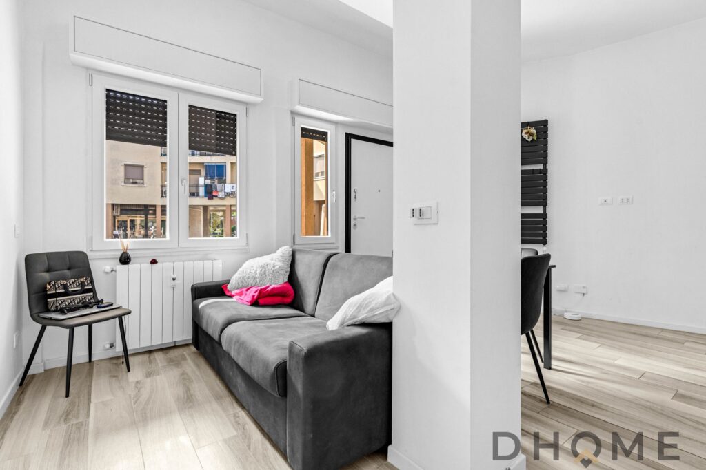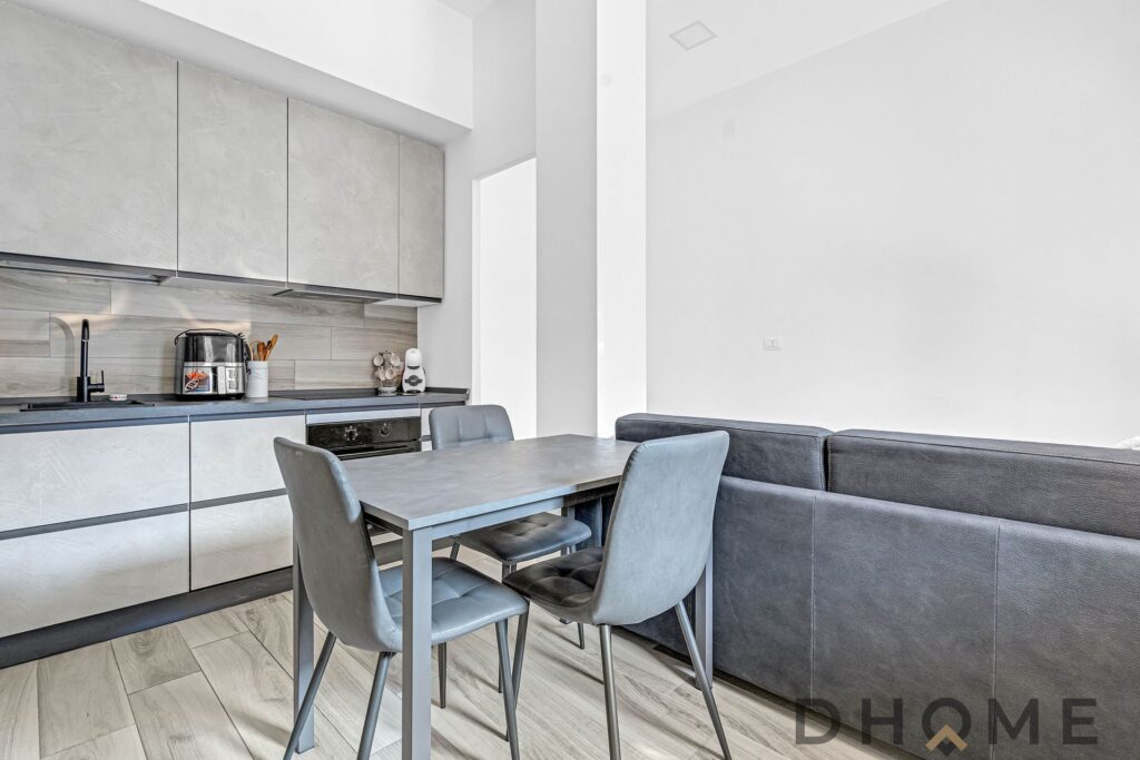 L’immobile, completamente ristrutturato con finiture di qualità, si estende su una superficie di circa 45 mq perfettamente distribuiti. L’ingresso si apre su una luminosissima zona giorno con cucina a vista, ideale per momenti di convivialità e relax. La camera matrimoniale offre comfort e spazio, mentre il bagno moderno, rifinito con materiali di pregio, completa l’abitazione.