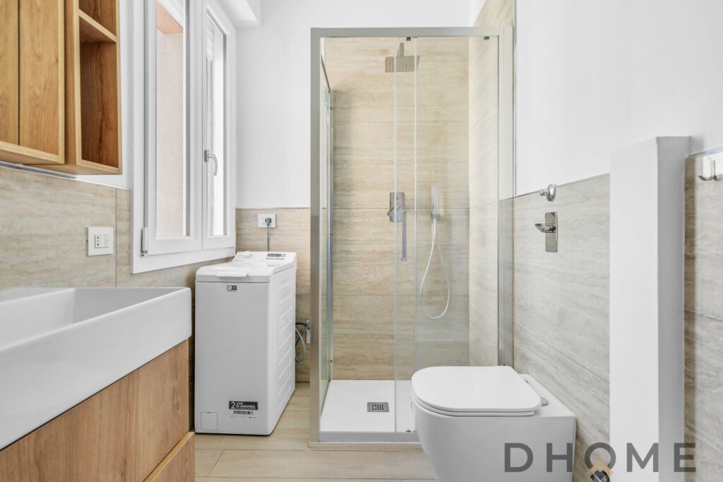 Bagno finestrato con box doccia in vetro cristallo