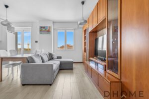 L’ingresso si apre sulla zona living, composta da soggiorno con cucina a vista, un ambiente accogliente e ben organizzato, con accesso diretto al balcone di pertinenza, perfetto per garantire luminosità e sfogo esterno.