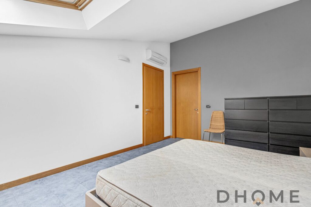 La zona notte ospita una camera matrimoniale capiente con letto contenitore e una cabina armadio dedicata. Completa la camera una cassaforte a muro per una maggiore sicurezza.