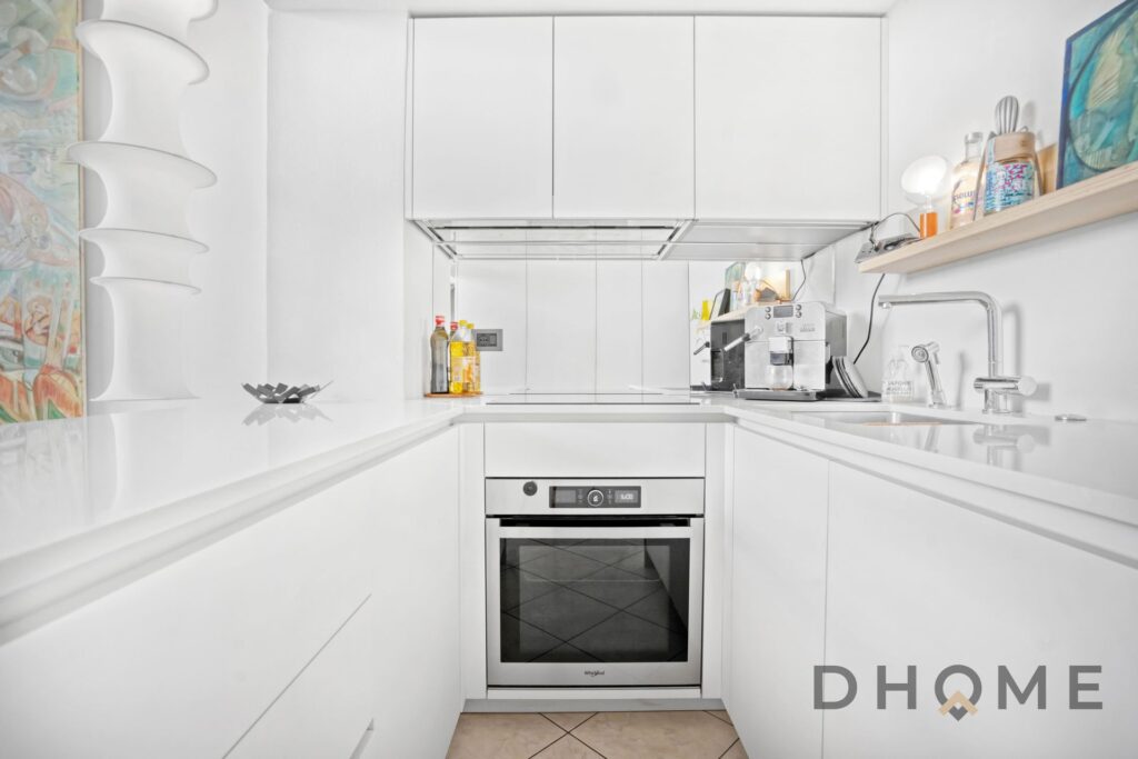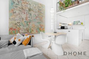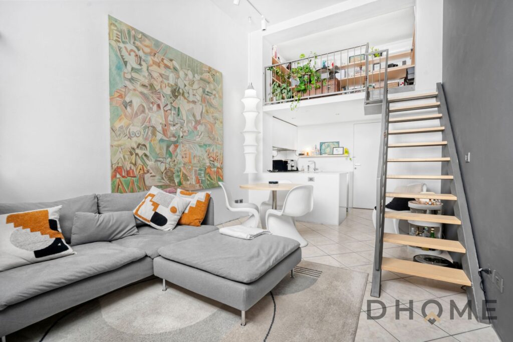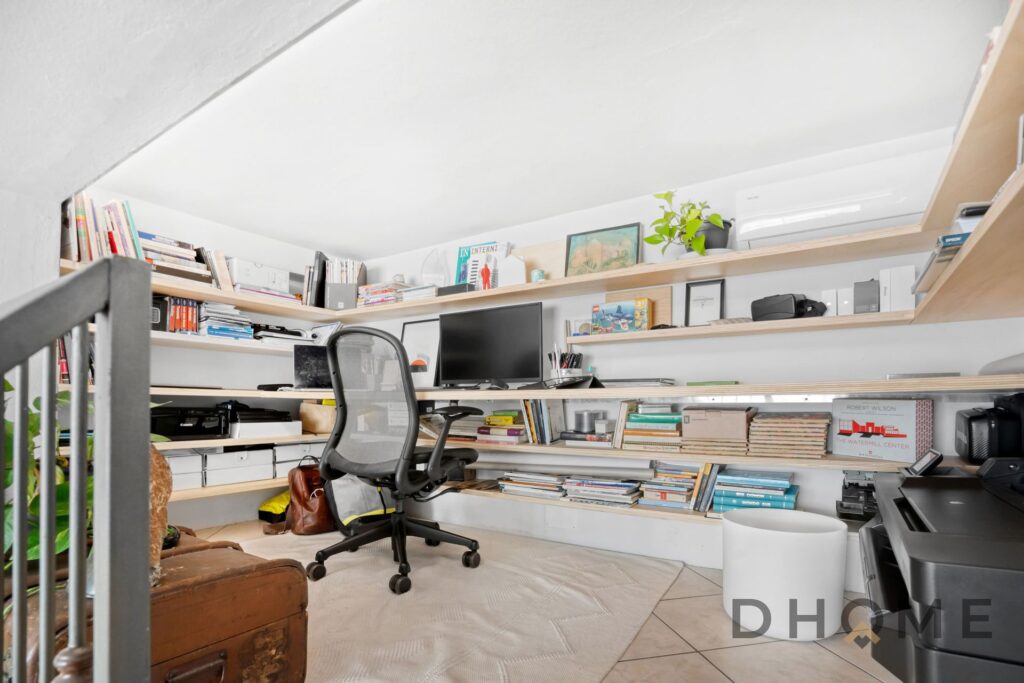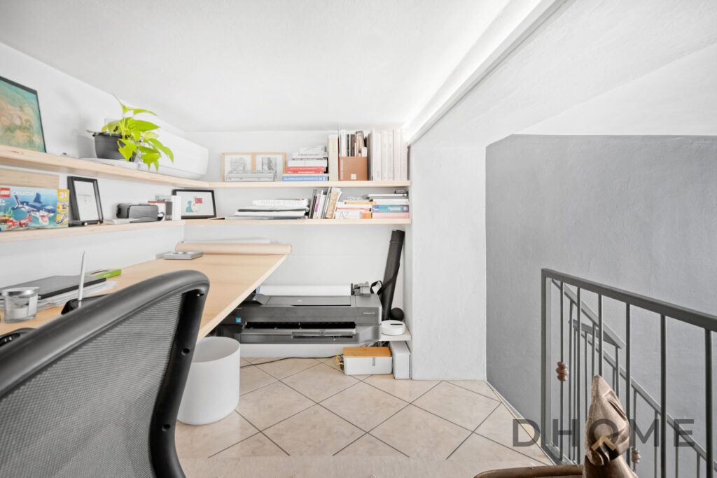 Luminoso soggiorno living con cucina separata a vista su misura dotata di isola centrale ed armadiatura a muro, perfettamente integrata nell’ambiente; camera da letto matrimoniale accogliente; ampio bagno rifinito con materiali di qualità; pratico studio soppalcato, ideale come area smart working o spazio aggiuntivo multifunzionale.