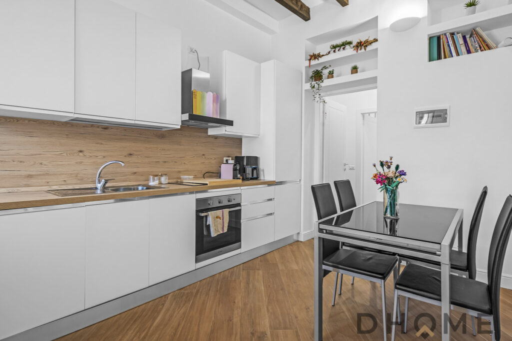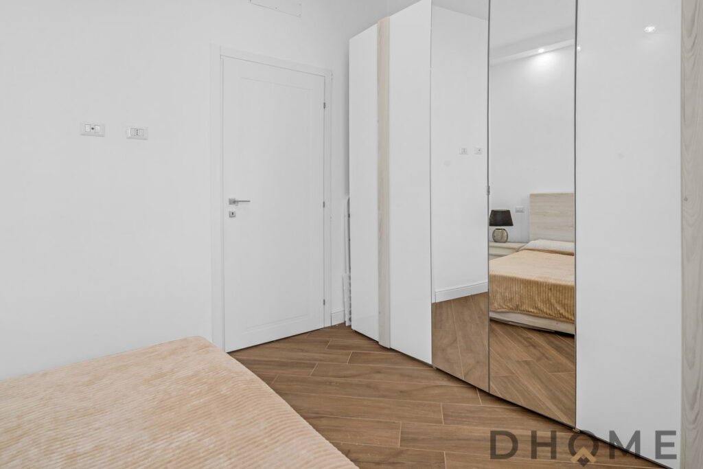 Si compone di soggiorno con cucina a vista completa di elettrodomestici, camera da letto matrimoniale con letto contenitore, bagno e ripostiglio in quota nel disimpegno. Completa la proprietà un balcone con vista su CityLife, che regala uno scorcio unico e suggestivo sulla skyline milanese.