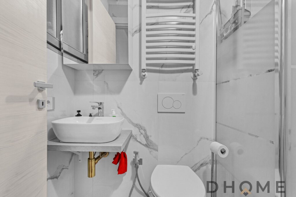 L’appartamento dispone di due bagni moderni condivisi con le altre inquiline, una cucina abitabile completamente attrezzata con forno, lavastoviglie, piano cottura e frigorifero, lavatrice e asciugatrice, aria condizionata e TV in camera. Sotto casa è disponibile un ampio parcheggio pubblico gratuito.