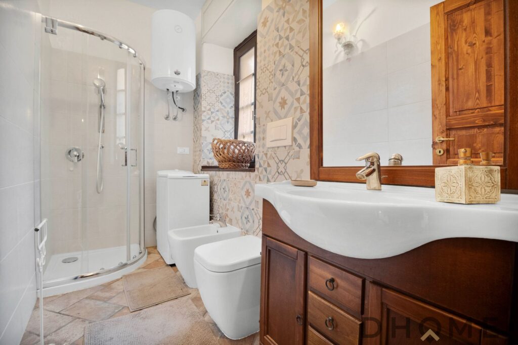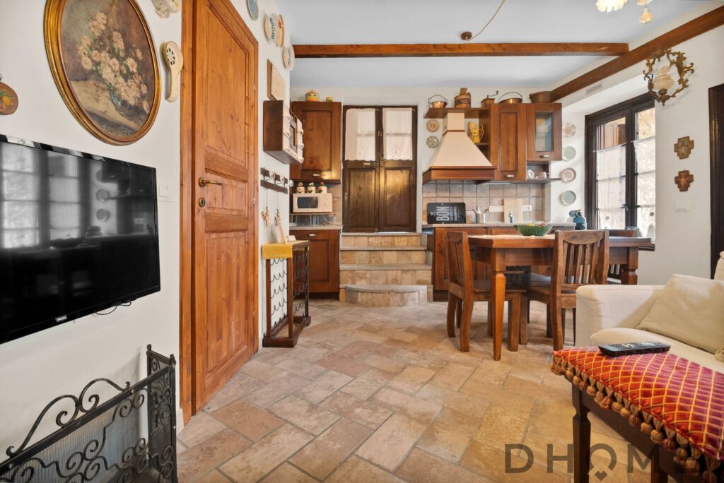Al piano terra l’ingresso si apre su una luminosa zona giorno composta da soggiorno e cucina a vista, ambiente caldo e conviviale impreziosito dalla presenza di una stufa a pellet, ideale per creare un’atmosfera intima e confortevole durante la stagione invernale. Completa il piano un comodo bagno.