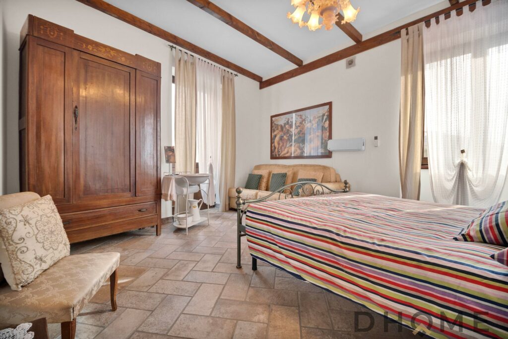 Tramite scala interna si accede al piano superiore dove troviamo una grande e luminosa camera matrimoniale con bagno dedicato, spazio ben distribuito e riservato. Dal piano si accede inoltre al balcone, perfetto per godere di momenti di relax all’aria aperta.