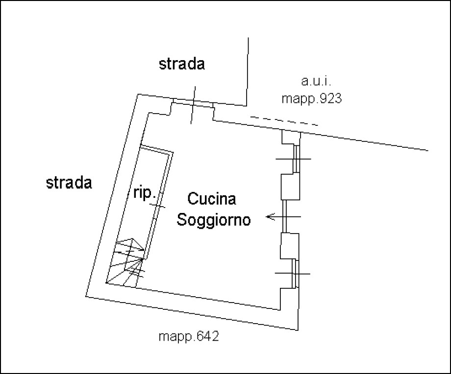 Al piano terra è presente uno spazio esterno, ideale per colazioni all’aperto o momenti di sole e relax, condiviso con altre due abitazioni.