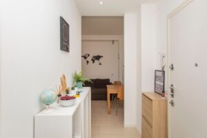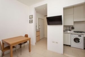 L’appartamento è così composto: ingresso su disimpegno, finemente ristrutturato con pavimentazione in GRES PORCELLANATO che ci porta alla ZONA LIVING con CUCINA A VISTA. Ampia CAMERA MATRIMONIALE con armadiature, bagno con BOX DOCCIA IN CRISTALLO RISTRUTTURATO e sanitari in CERAMICA. Completa la soluzione una seconda CAMERA DA LETTO utilizzabile anche come piccolo STUDIO con accesso al balcone.