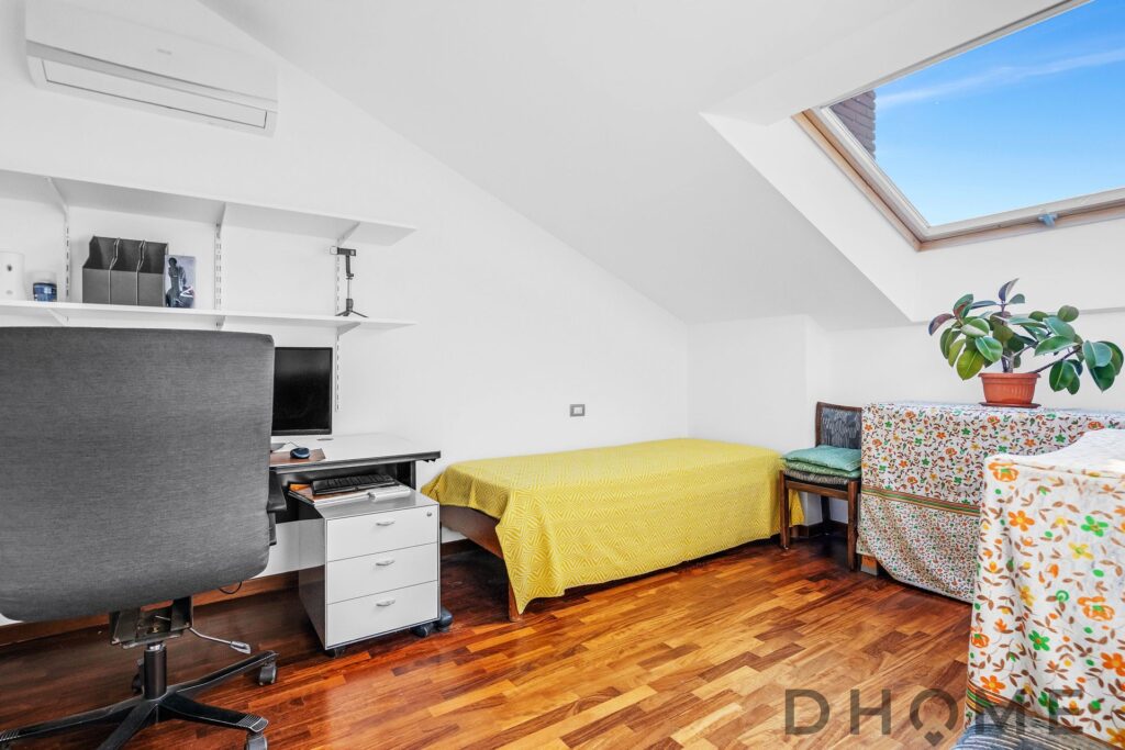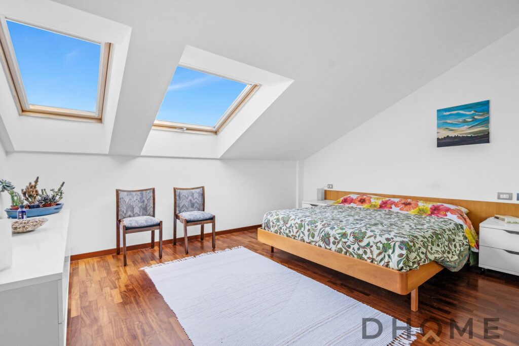 Una comoda scala collega la zona notte, composta da: Camera matrimoniale con doppio velux e tende oscuranti, Bagno padronale con vasca e velux, Cameretta con possibilità di realizzare una cabina armadio, Finiture di qualità: ceramica nella zona giorno, parquet nella zona notte, porta blindata, infissi in PVC con doppio vetro.