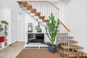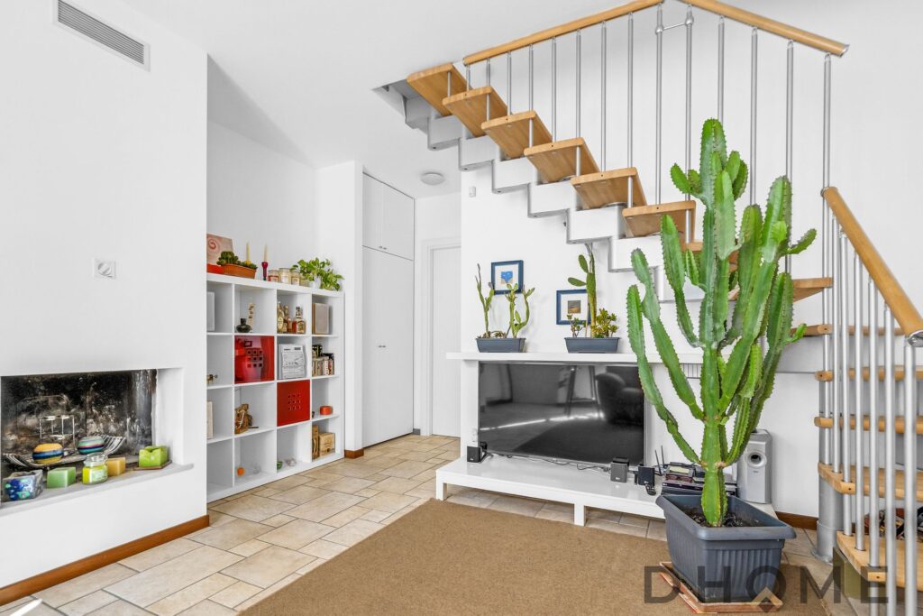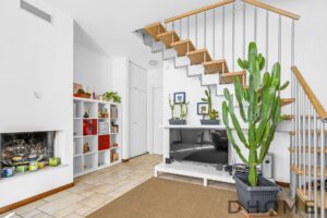 L’ingresso si apre su una luminosissima zona living arricchita da un camino funzionante, ideale per creare atmosfera e comfort. Gli arredi su misura ottimizzano gli spazi e donano carattere all’ambiente.