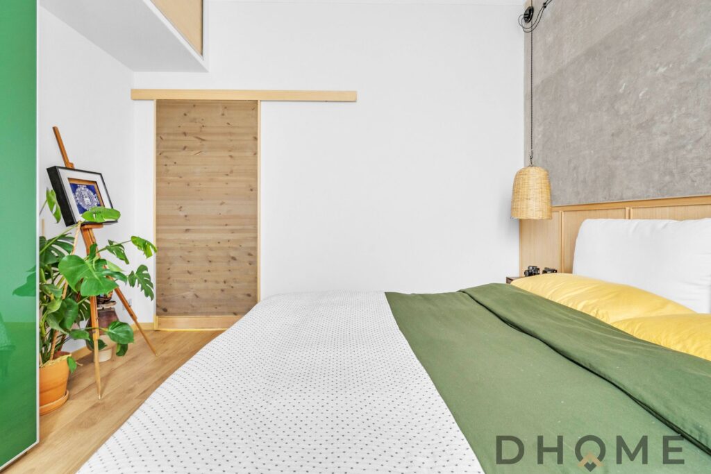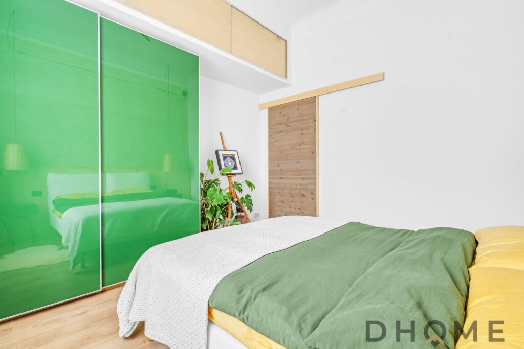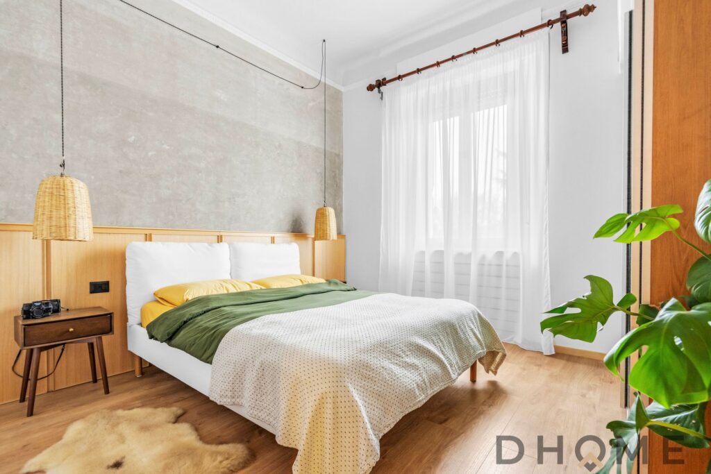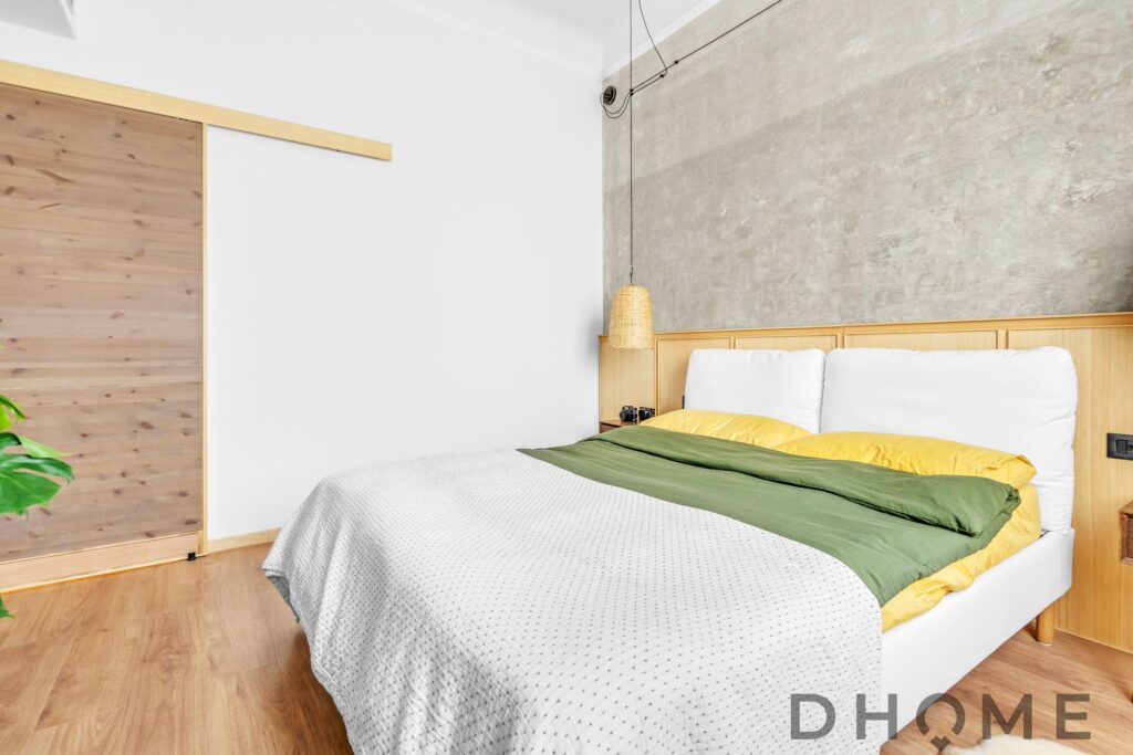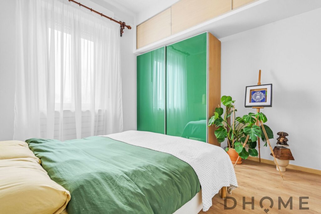 La camera da letto, ampia e confortevole, riprende lo stesso concept progettuale dell’intero appartamento, con soluzioni su misura e materiali di pregio che restituiscono un’atmosfera intima, ordinata e di grande eleganza.
