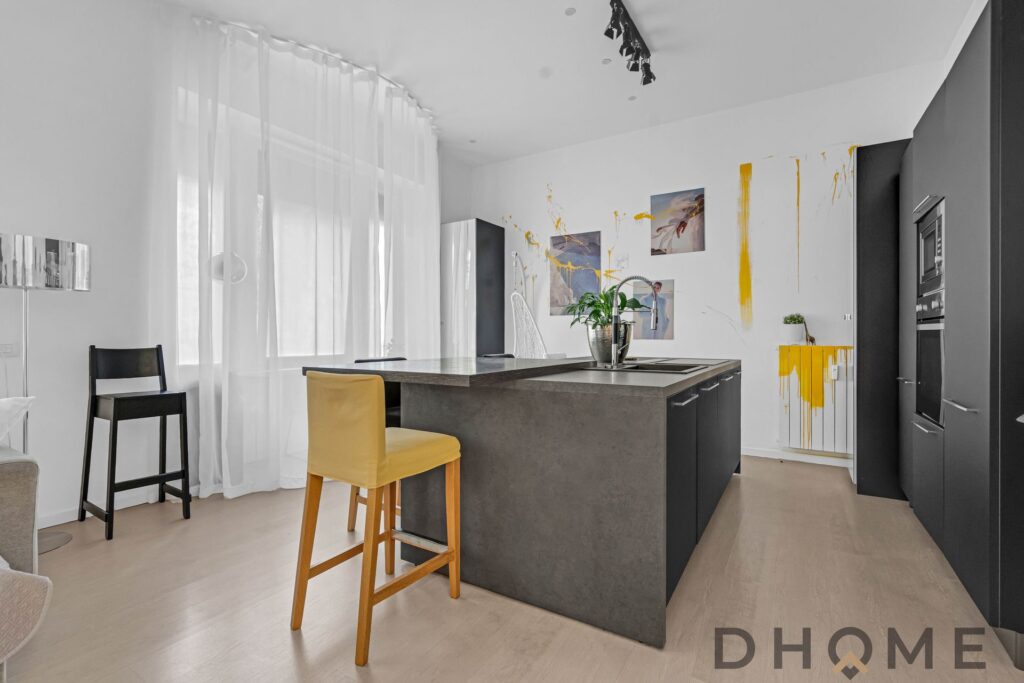 L’appartamento, completamente ristrutturato, è un concentrato di stile e personalità. Gli arredi artigianali realizzati a mano e selezionati durante il Salone del Mobile rendono ogni ambiente unico, elegante e di grande impatto visivo.