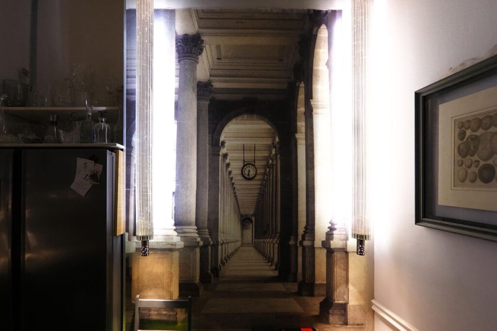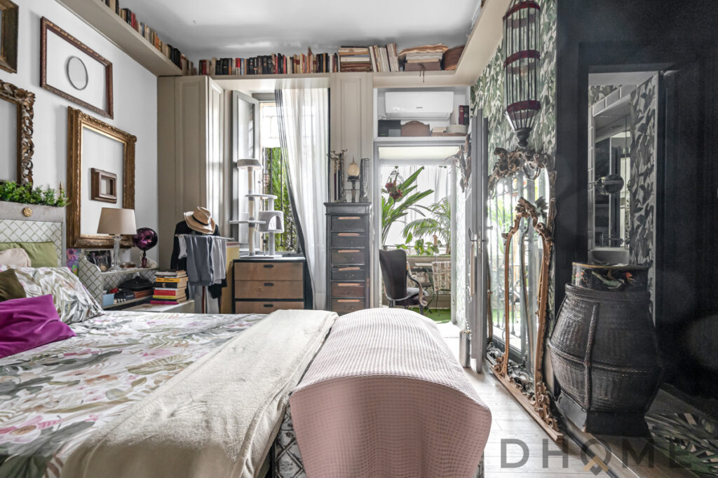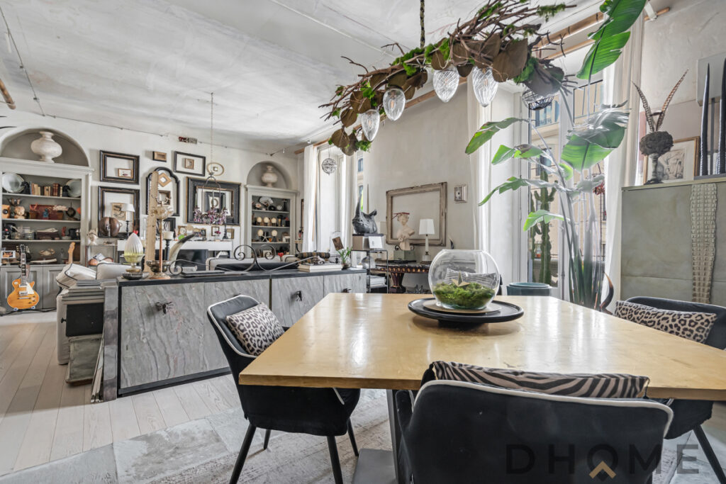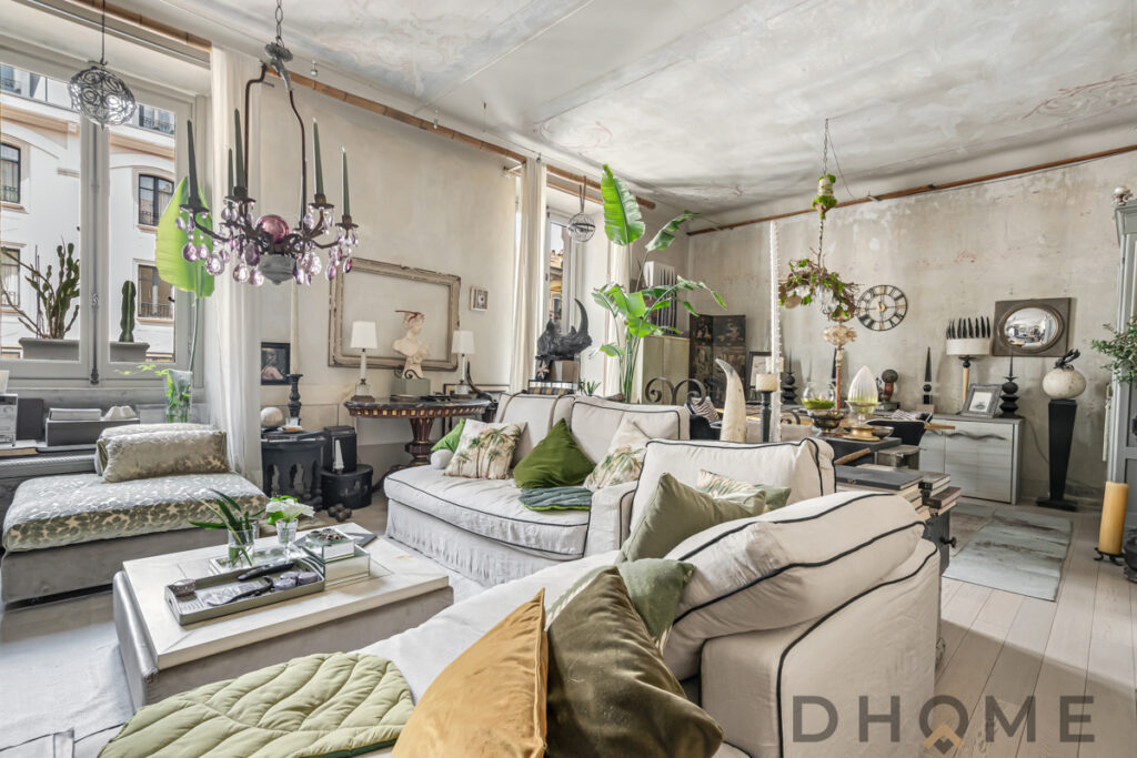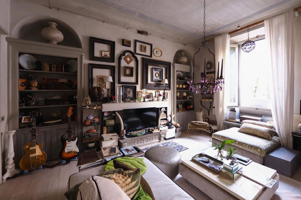 Il soggiorno doppio, vero gioiello della casa, è ampio, luminoso e impreziosito da un balcone. Le pareti e il soffitto conservano affreschi originali d’epoca sapientemente mantenuti, che donano all’ambiente un’eleganza senza tempo e un’atmosfera unica, caratteristica principale di questo splendido appartamento.
