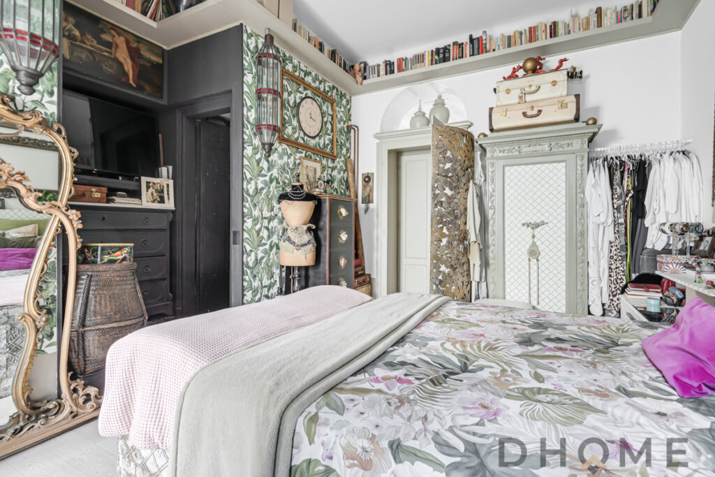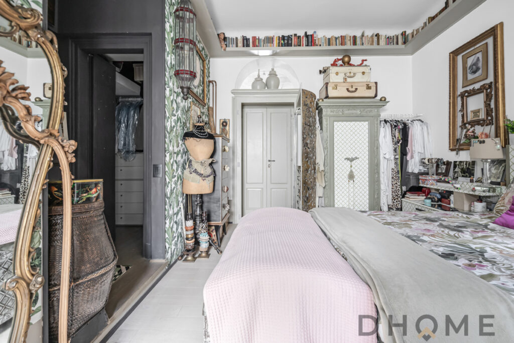 La camera da letto matrimoniale è collegata anch’essa al ballatoio privato che espone interna-mente, e si completa con un secondo bagno e una particolare cabina armadio spaziosa realizzata su misura, progettata con soluzioni di alta qualità e attenzione al dettaglio.