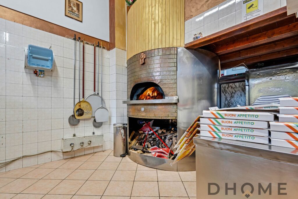 Al piano terra si trovano 2 ampie vetrine su strada che assicurano ottima visibilità commerciale, l’ampio spazio adibito a pizzeria con retro cucina, oltre a servizi igienici. Completa la dotazione una canna fumaria