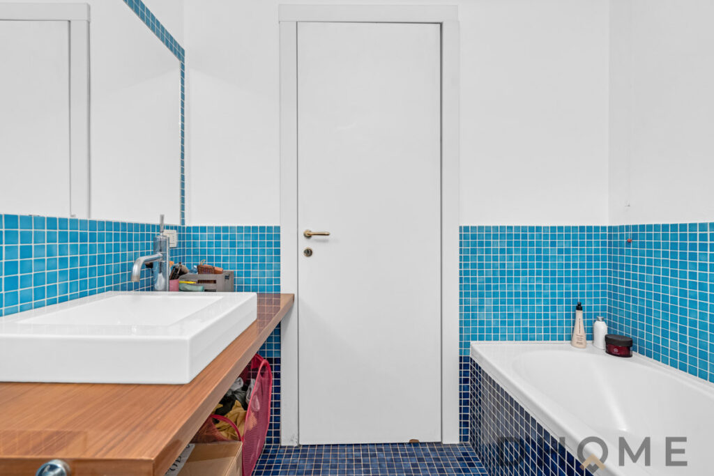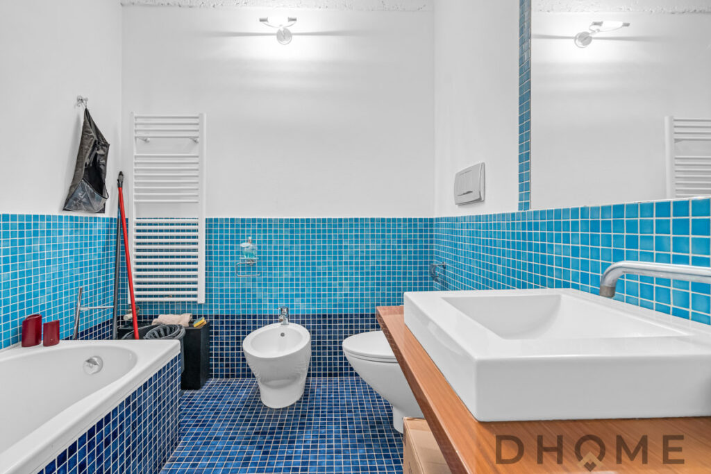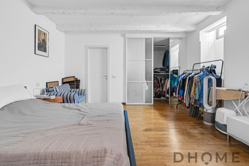 Al piano sottostante, è presente la zona notte con cabina armadio e bagno con vasca.