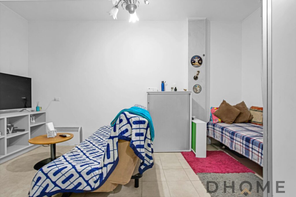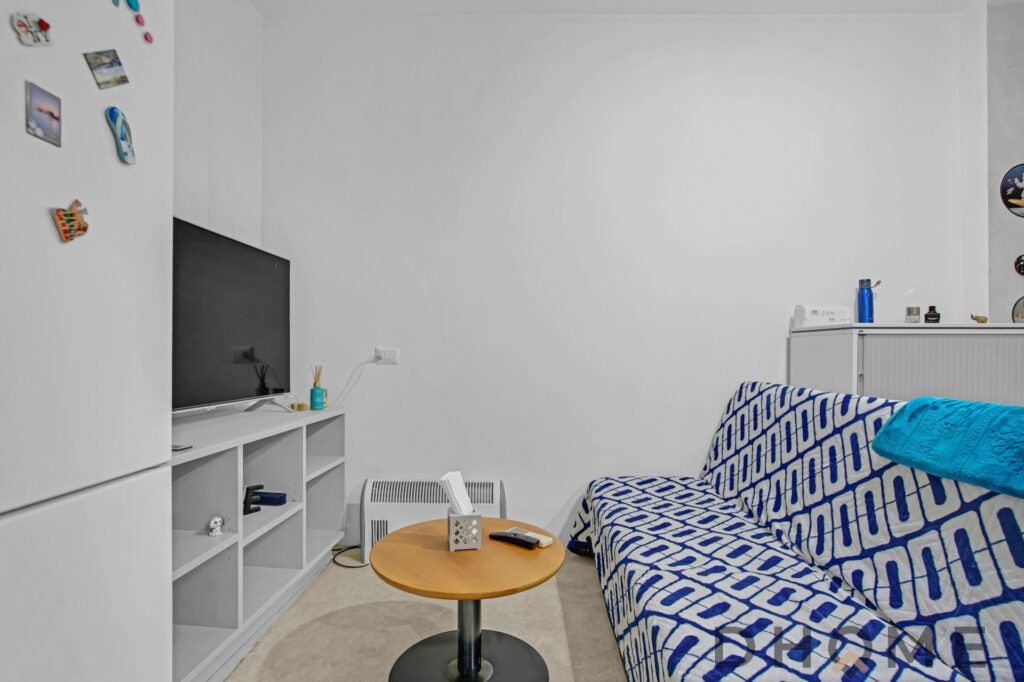 Una luminosa zona living con comodo divano e angolo notte ben organizzato, studiato per garantire comfort e praticità nella vita quotidiana.