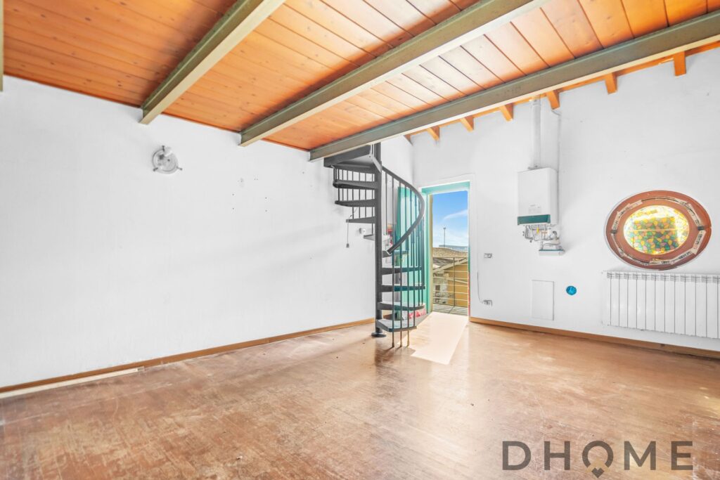 L’immobile, sito in una palazzina recentemente ristrutturata, gode di una comoda posizione che permette di raggiungere in pochi istanti tutti i principali servizi della zona (supermercati, bar, centri commerciali, scuole, poste, campi sportivi, benzinai…) ed è cosi composto: ingresso su ampiua zona giorno con cucina a vista, disimpegno dal quale si accede al bagno finestrato con doccia e, tramite una scala a chiocciola, si passa dalla zona giorno al soppalco, dove é ubicata la zona notte.