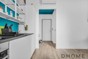 l’immobile è composto da: ingresso in disimpegno, zona living con cucina a vista e accesso al balcone, divano letto, bagno con box doccia.