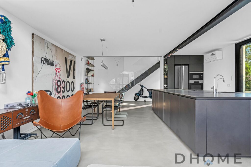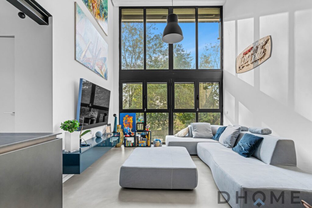 Al piano principale si sviluppa una zona living a doppia altezza, con ampie vetrate a tutta parete che inondano gli ambienti di luce naturale.