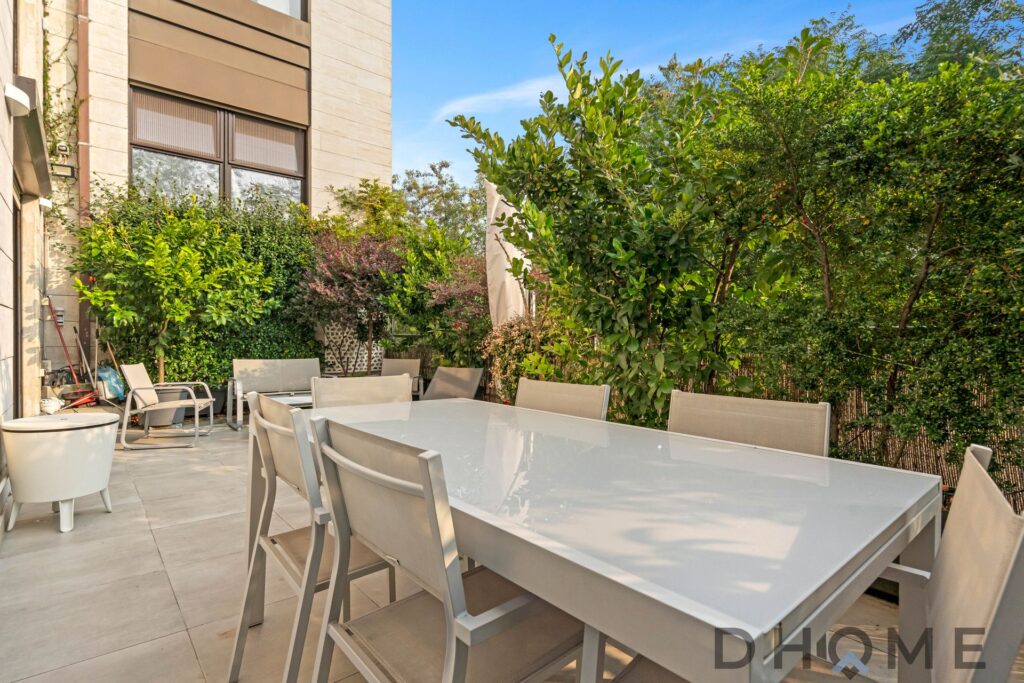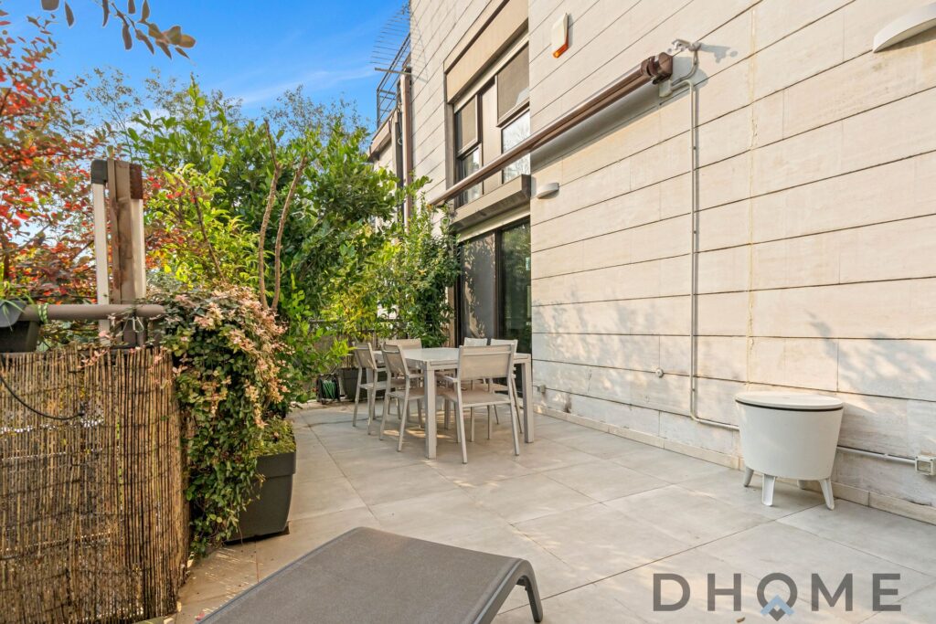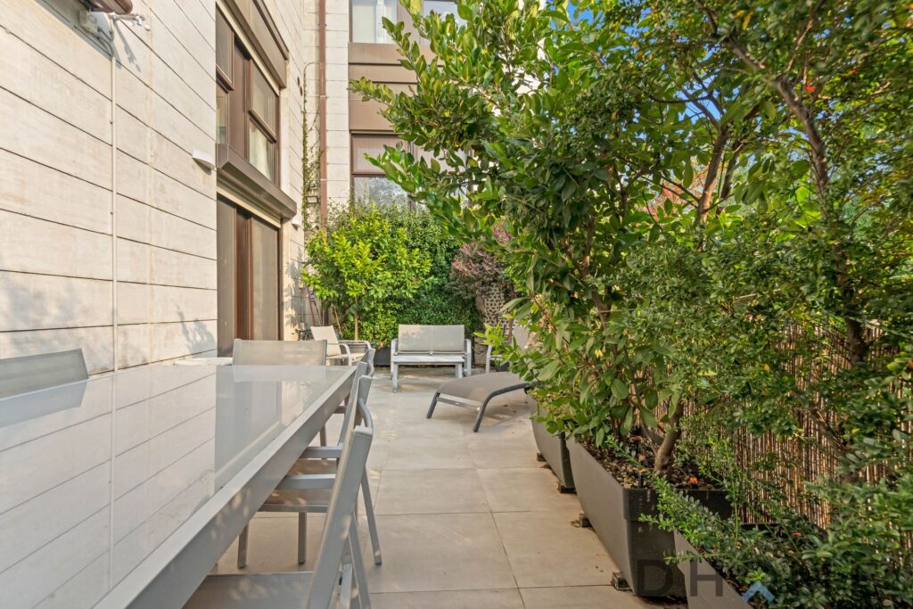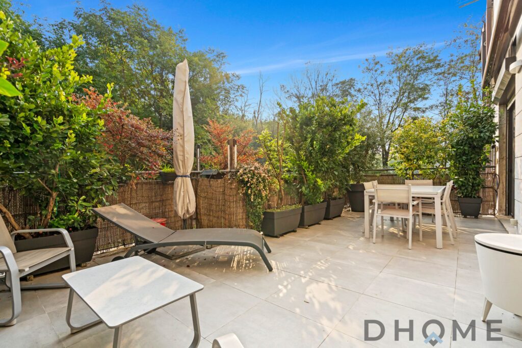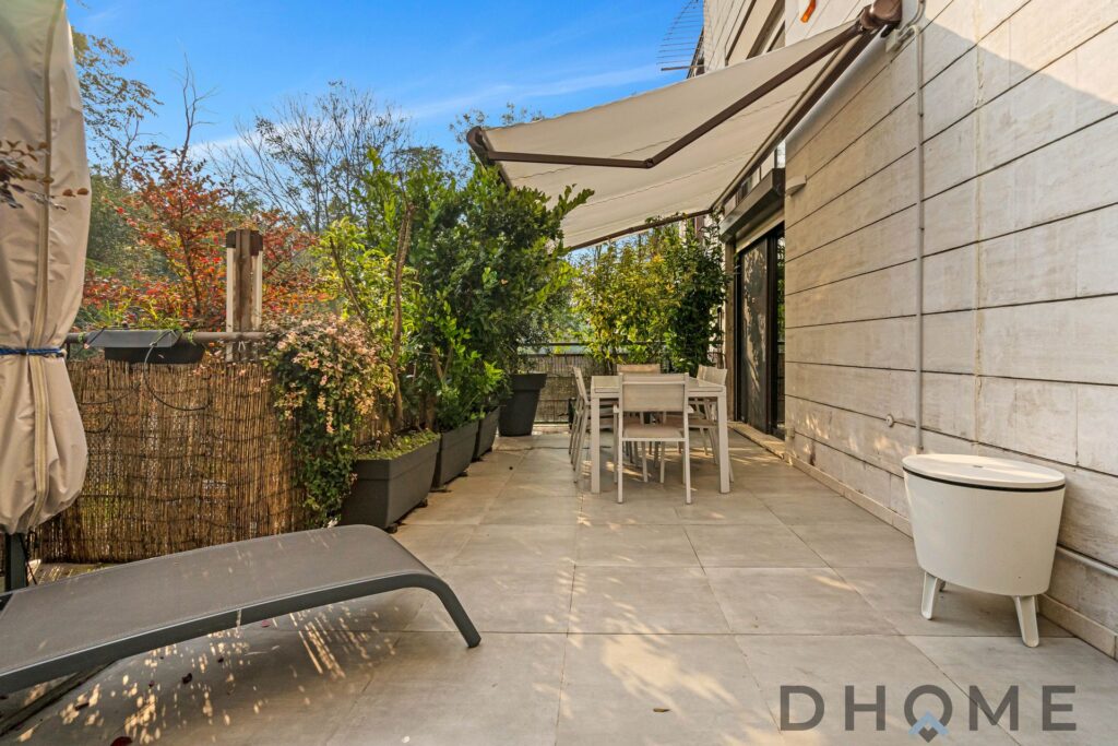 Un terrazzo riservato, immerso nel verde, offre uno spazio esterno ideale per momenti di relax e convivialità.