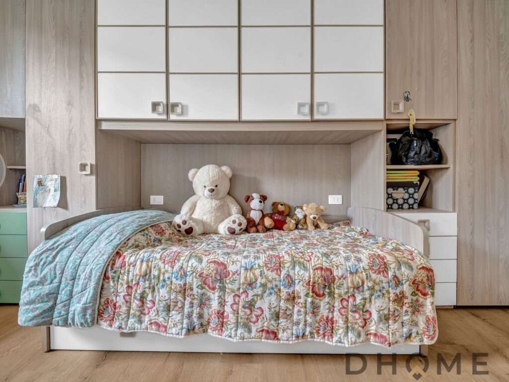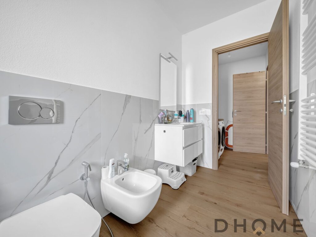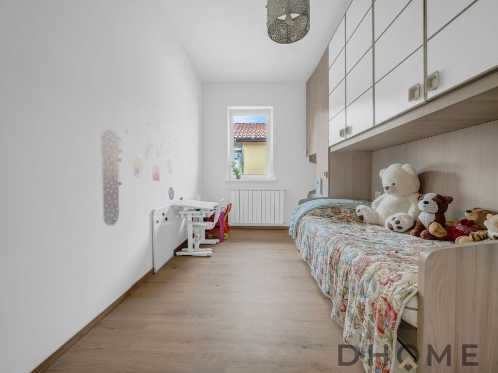 Accessibile tramite scala esterna, troviamo una soluzione speculare: soggiorno con cucina a vista, disimpegno notte, cameretta, camera matrimoniale, antibagno e bagno finestrato con box doccia. Dalla zona giorno si accede a un pratico balcone.