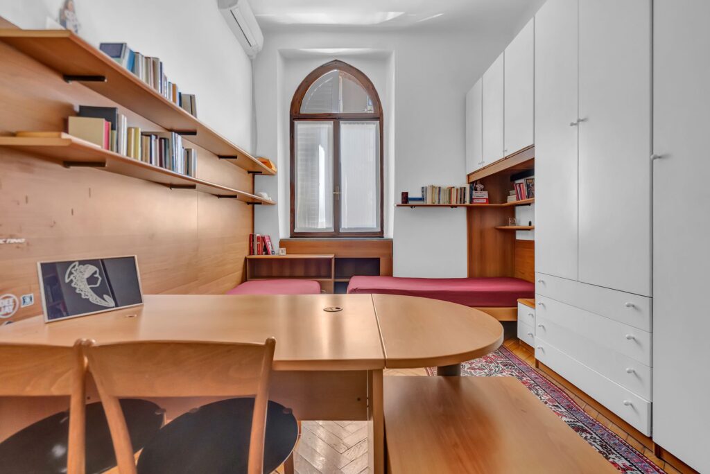 Gli ambienti sono ampi, luminosi e caratterizzati da dettagli d’epoca di grande pregio.