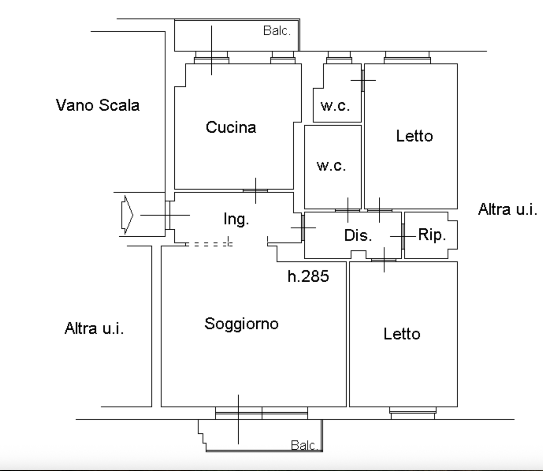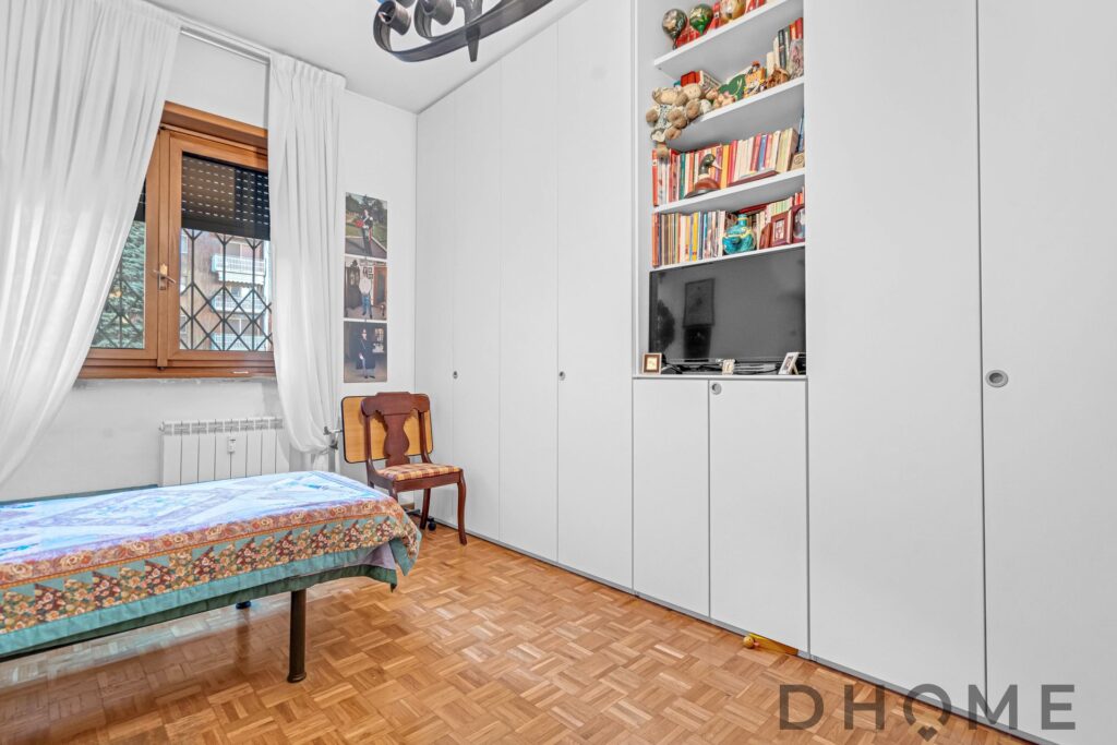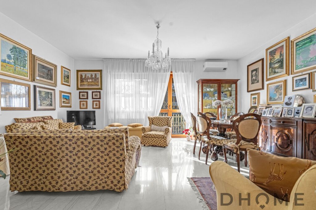 Composto da ingresso, ampio soggiorno, cuicina abitabile, doppi servizi, due camere, ripostiglio e a completare l’abitazione abbiamo la doppia esposizione e due balconi.