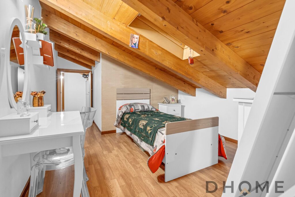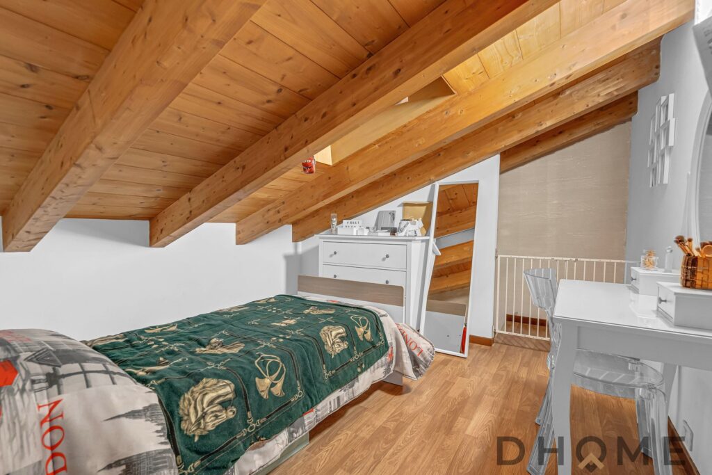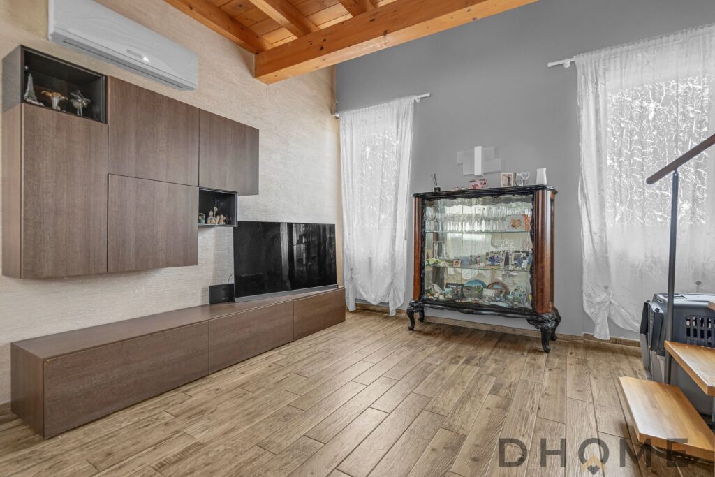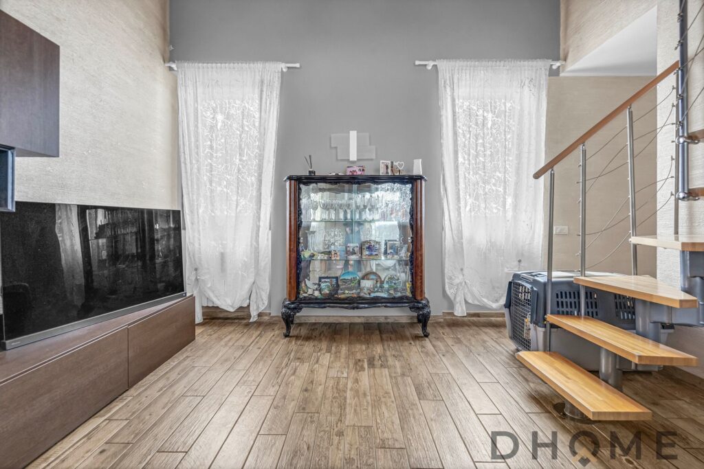 Nel soggiorno è presente un soppalco funzionale, che conduce al sottotetto di pertinenza, offrendo un’ulteriore area sfruttabile come zona relax, smart working, studio o spazio hobby.