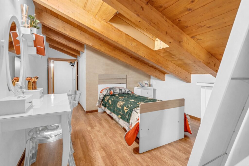 Nel soggiorno è presente un soppalco funzionale, che conduce al sottotetto di pertinenza, offrendo un’ulteriore area sfruttabile come zona relax, smart working, studio o spazio hobby.
