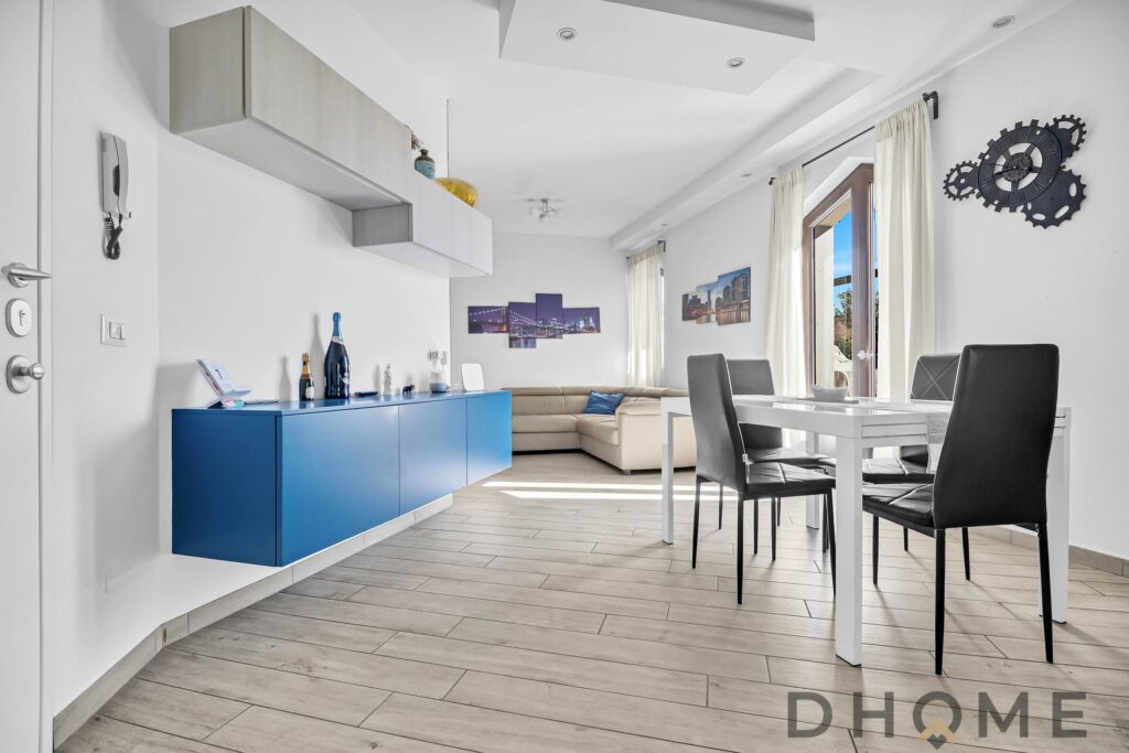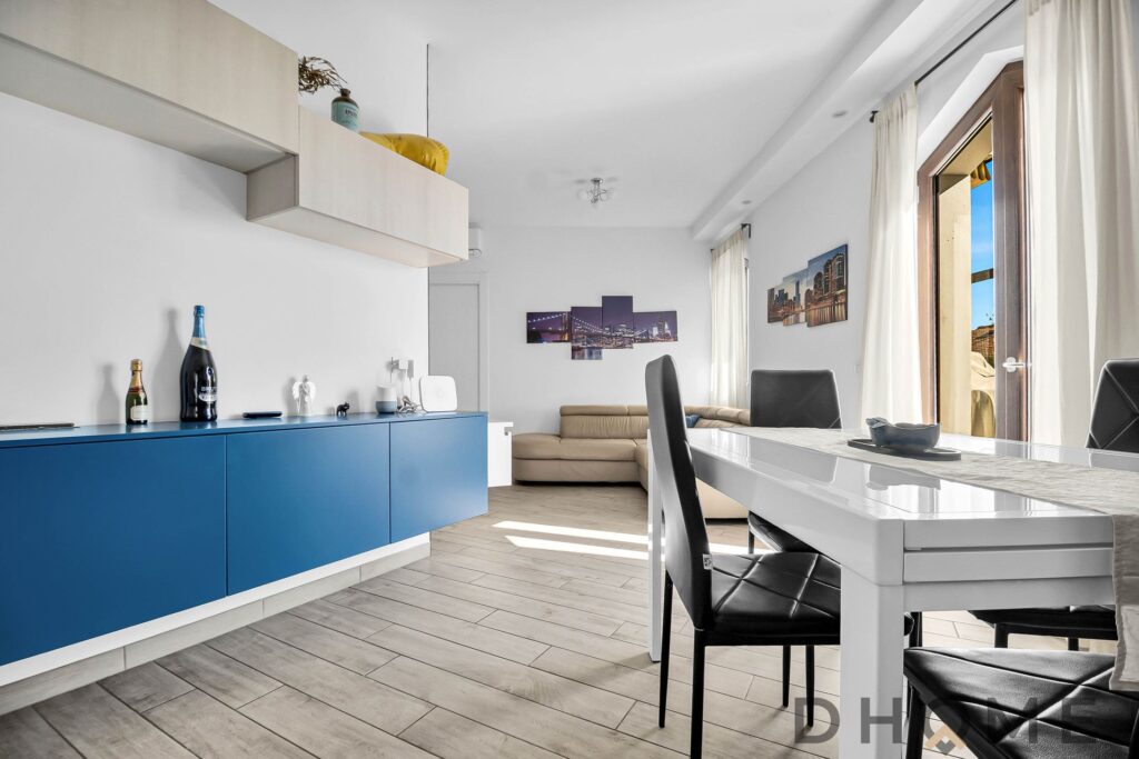 Zona living di 32 mq, open space ma ben distribuita, con area pranzo a fare da filtro naturale tra soggiorno e cucina;