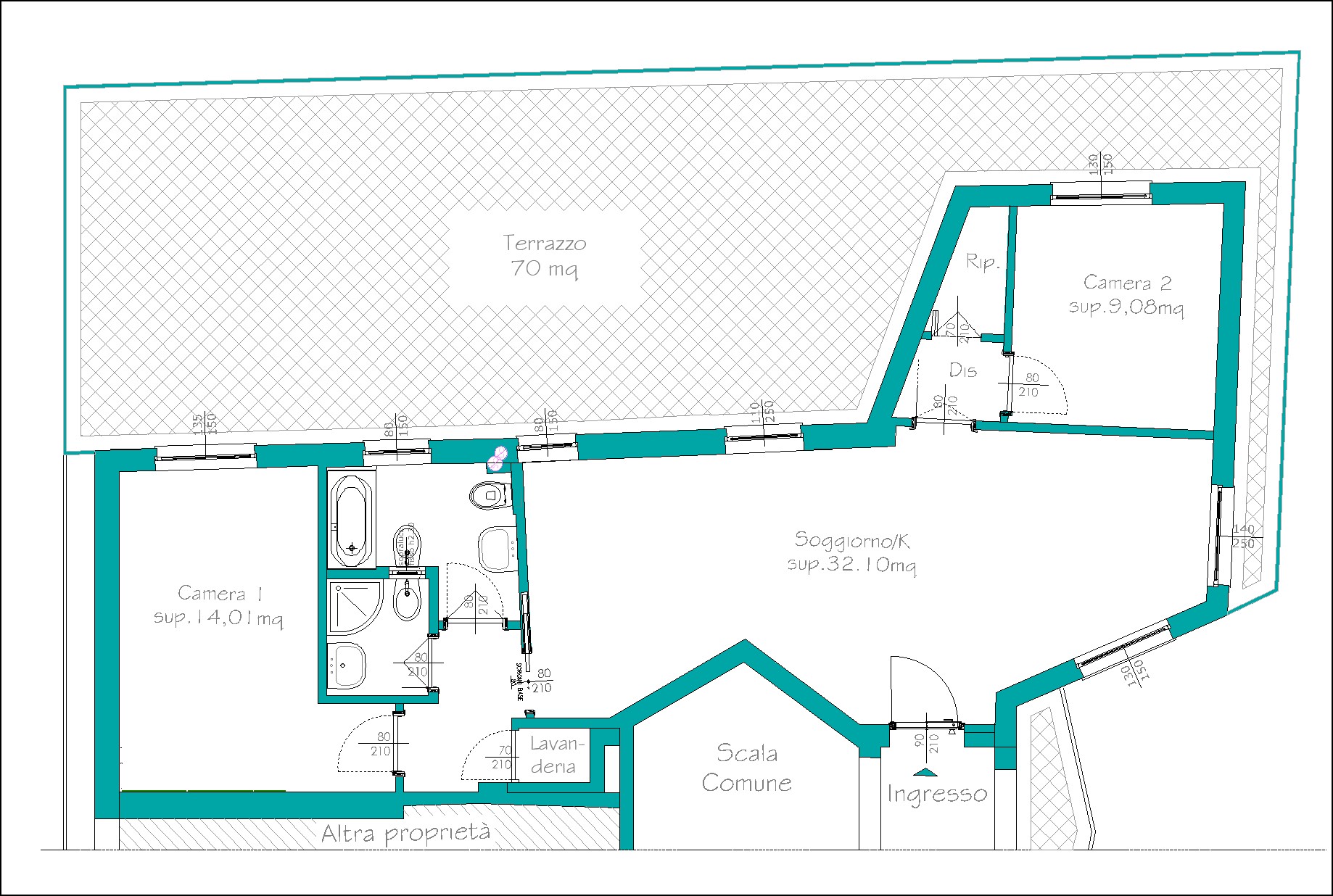 Trilocale finemente ristrutturato a nuovo di 96 mq con Terrazzo di 70 mq.